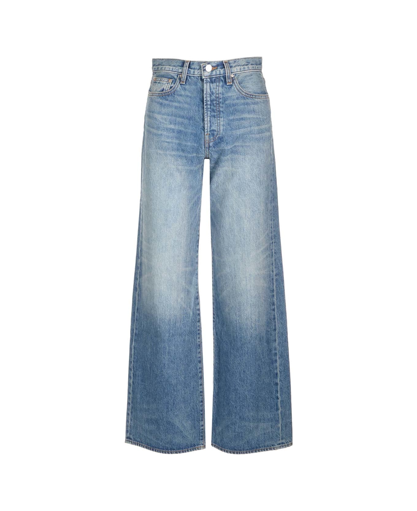 Loose fit jeans in stonewashed medium blue denim from Amiri, featuring a high waist and wide leg.