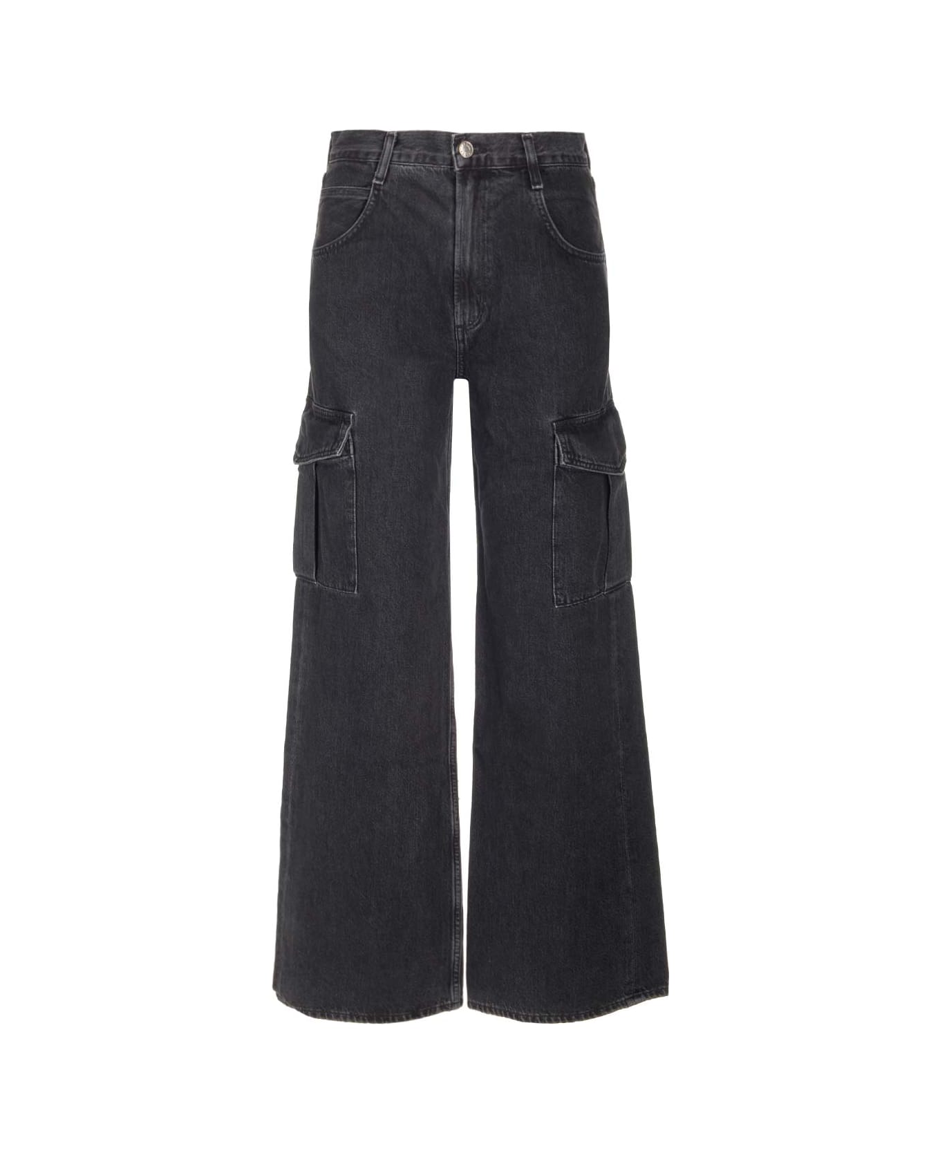 Black denim Minka cargo jeans from Agolde, with side cargo pockets, wide flared leg, high waist. Composition: 80% COTTON, 20% RECYCLED COTTON