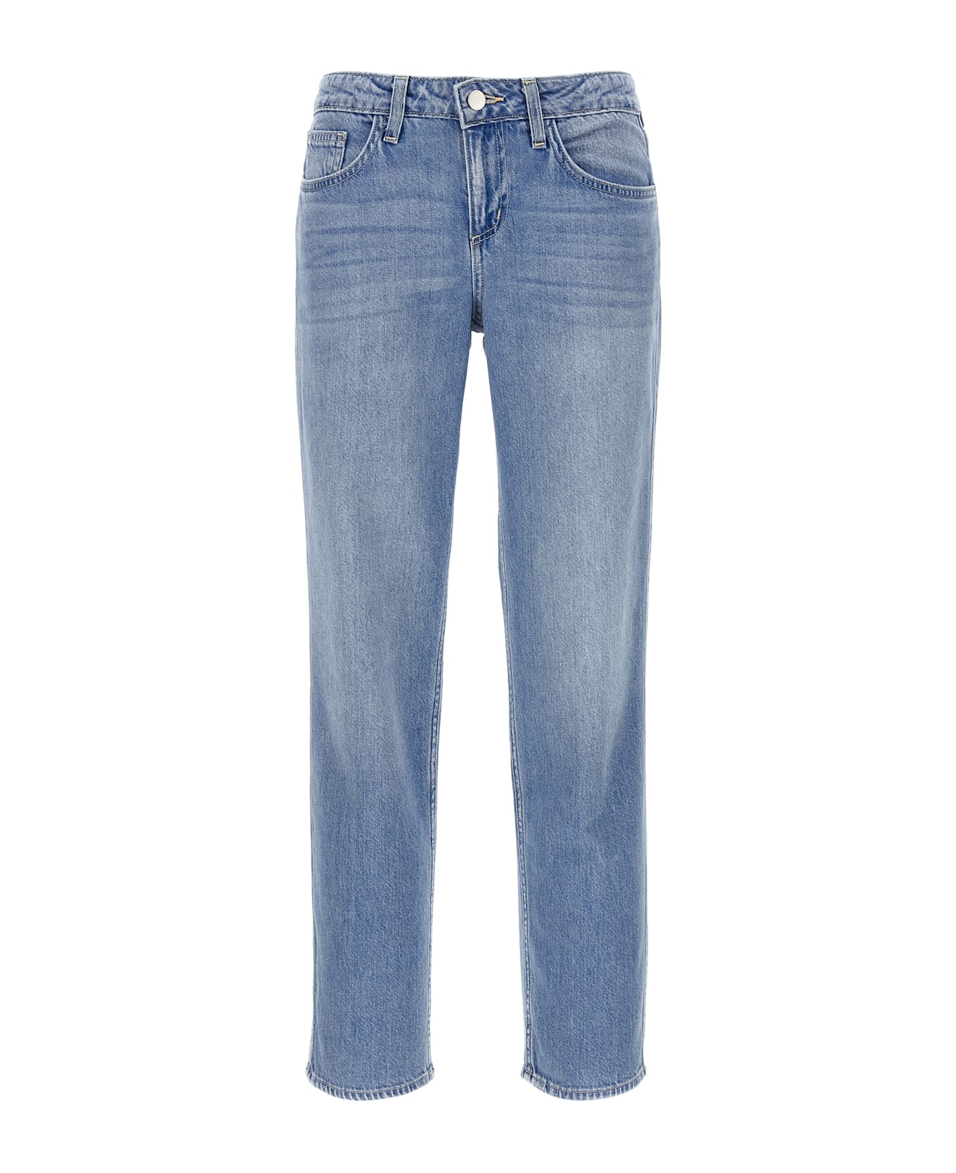 'Nevia' medium wash cotton denim jeans, low waist model, straight leg, zip and front button closure, five pockets.