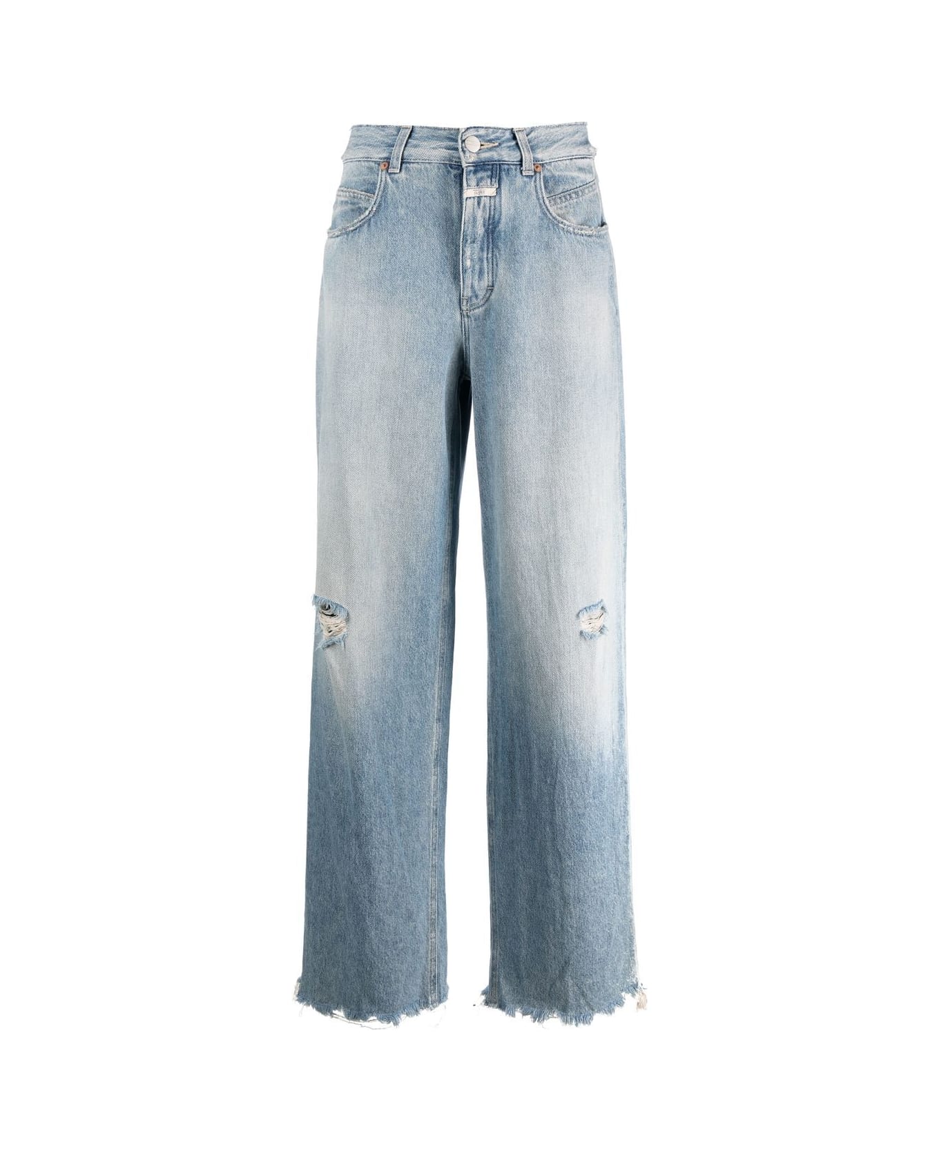 'nikka' Light Blue Wide Leg Jeans With Rips And Logo Patch In Recycled Cotton Denim Woman