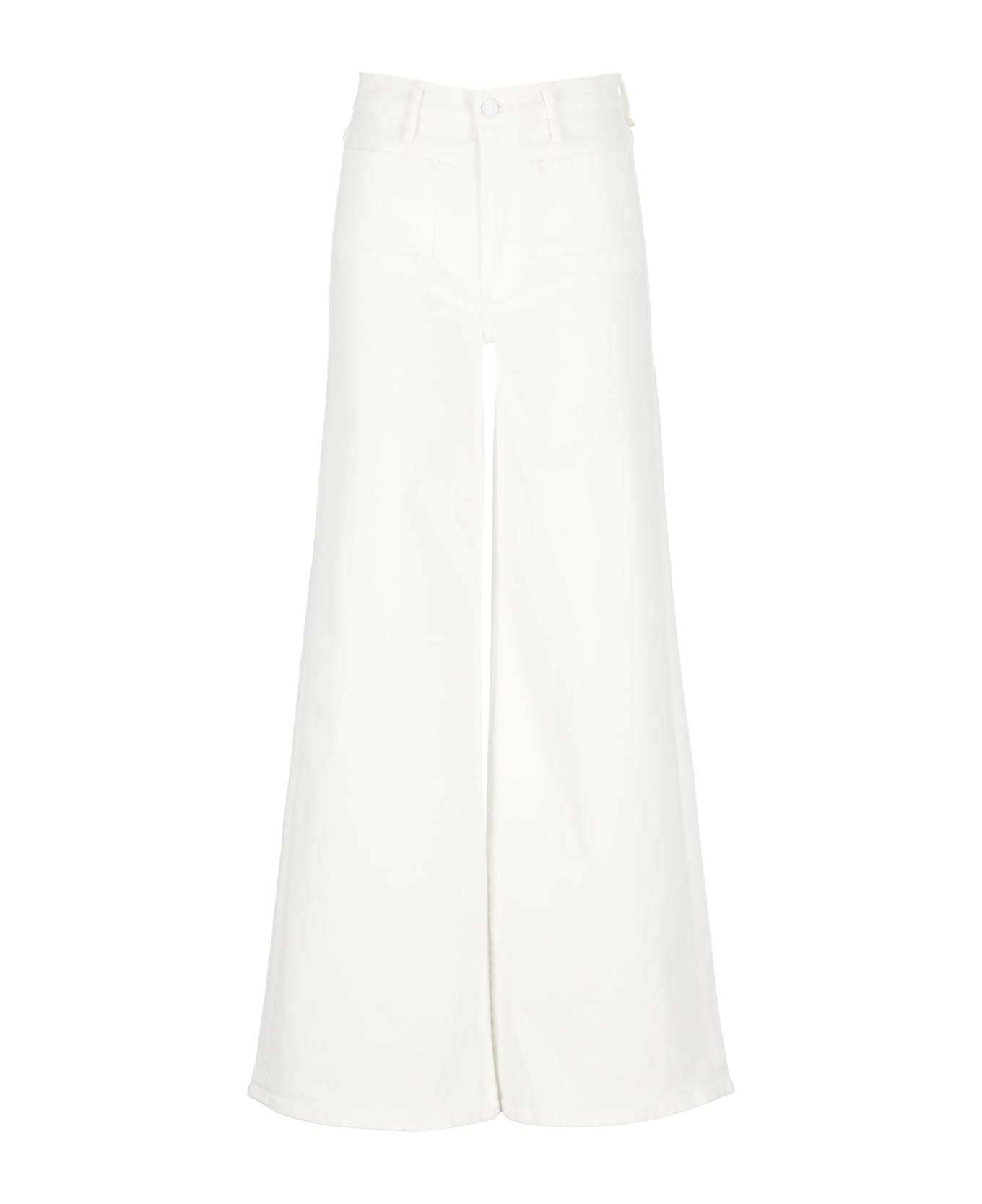 - White Mother cotton jeans for woman - Belt loops - Four pockets - Front button and zip fastening - Wide leg