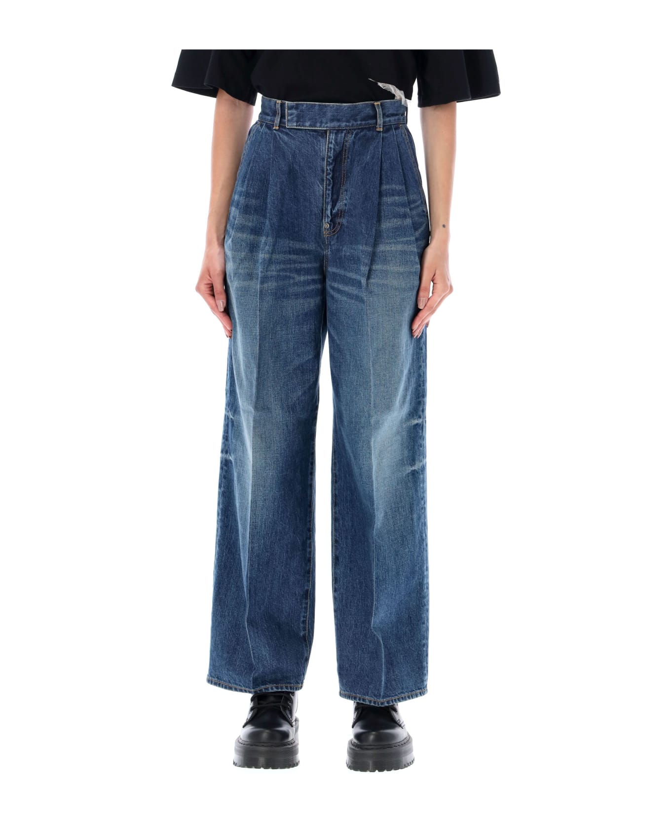 Pleated Denim Jeans By Undercover. Featuring: High-waist Logo Patch To The Rear Contrast Stitching Pleat Detailing Belt Loops Concealed Front Fastening Two Diagonal Pockets To The Sides Two Rear Patch Pockets Straight Hem Model Is 1,72 M Tall And She Is Wearing Size 1
