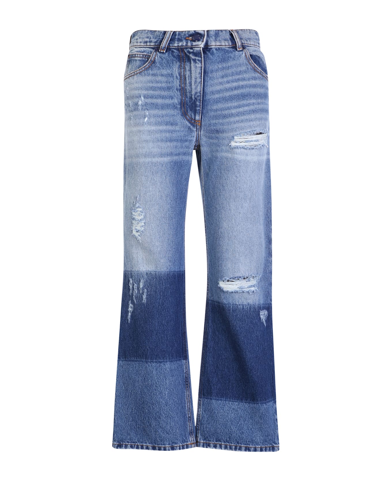 Embrace a bold, contemporary style with these distinctive flared Moncler Genius jeans, featuring ripped embellishments for urban appeal and a two-tone effect adding dynamic aesthetics.