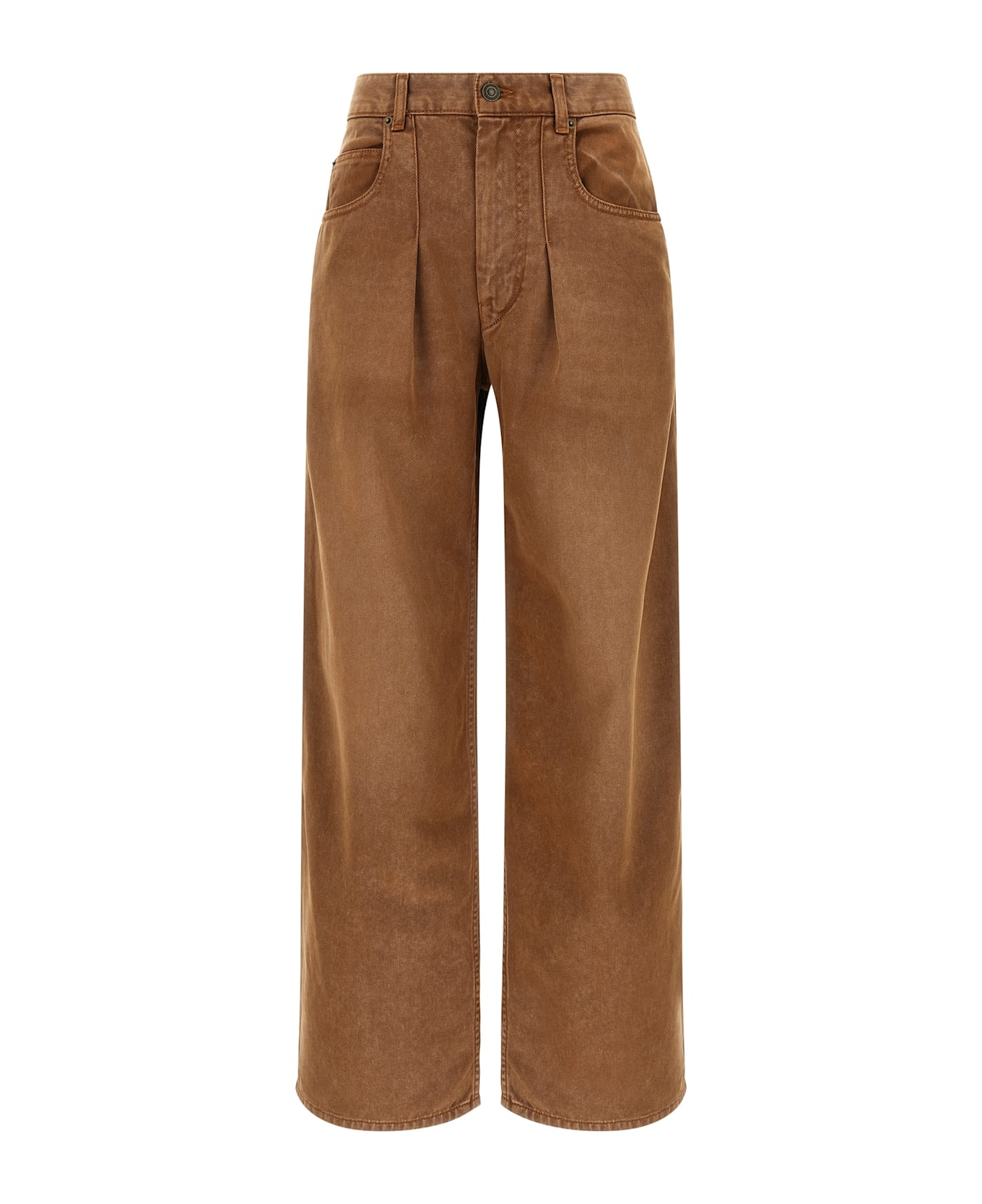 'Rodayna' jeans in garment-dyed cotton denim with pins, high waist, five pockets, front zip closure, wide leg, back logo tag. Composition: 65% lyocell 35% cotton