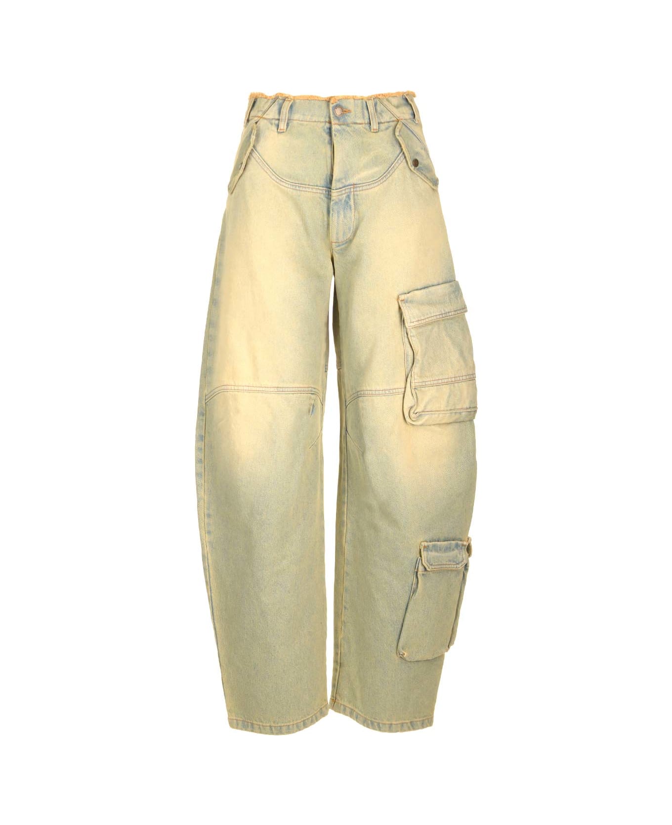'Rosalind' cargo jeans by Darkpark in dirty vintage effect denim, with balloon silhouette, high waist, maxi pockets.