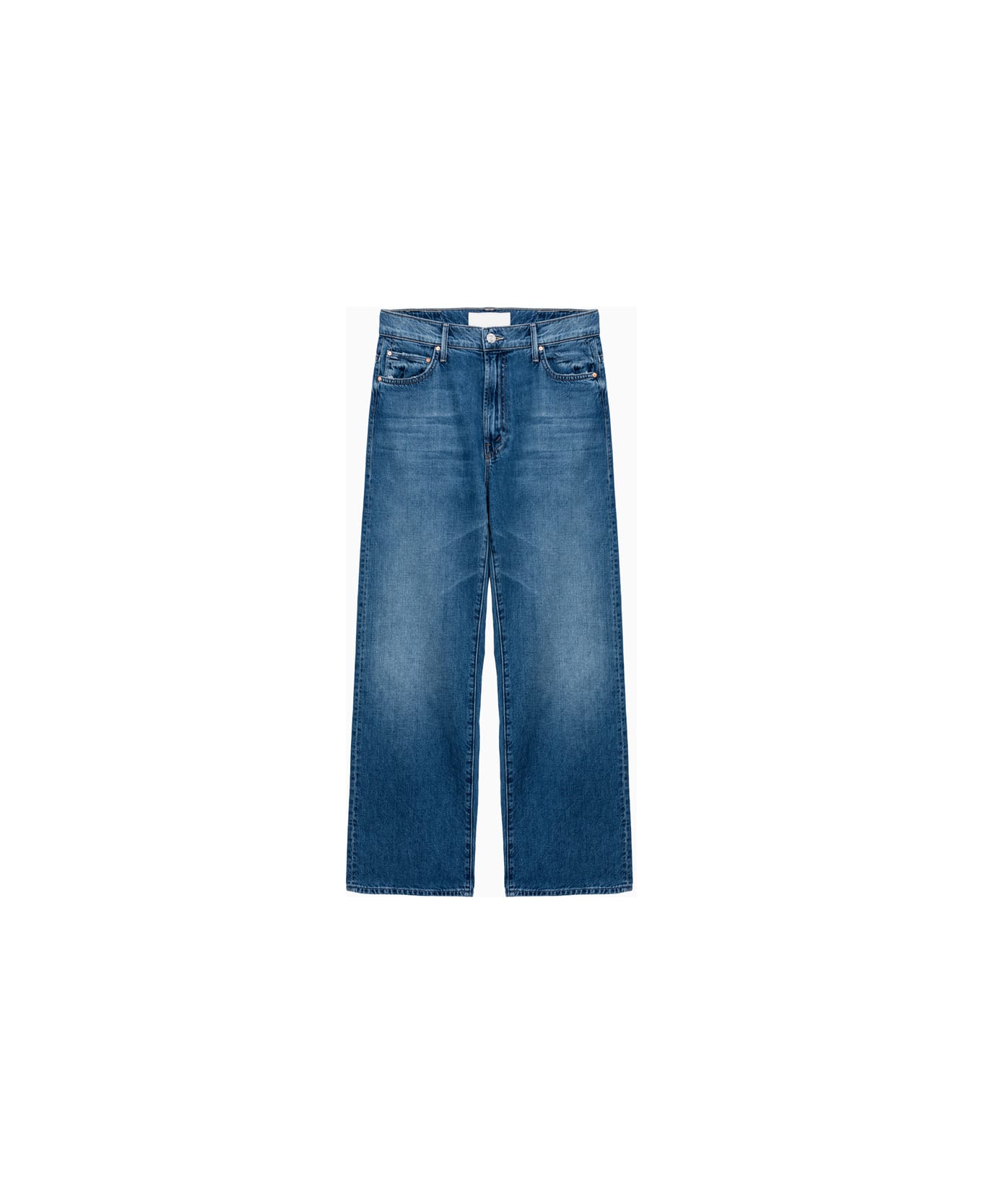 the dodger jeans in medium-wash denim. light whiskering at front. high waistband with belt loops and shaped rear label. mother micro label at waist. zipper and logo button closure. two front pockets and two back pockets. regular ankle-length fit, flared bottom. composition: 80% cotton 20% recycled cotton.