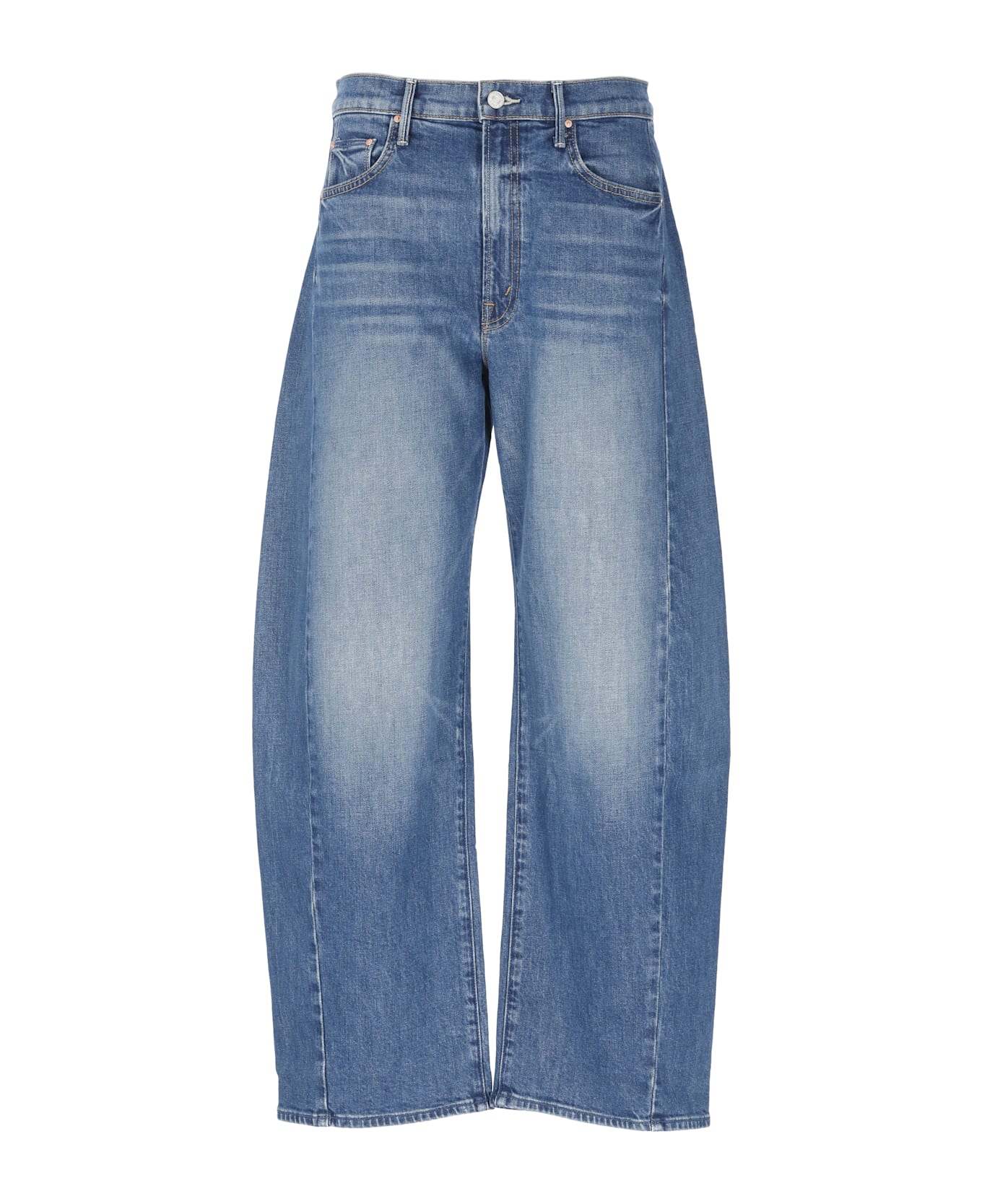 - Blue Mother denim jeans for woman - Belt loops - Front zip and button fastening - Five pockets - Wide leg