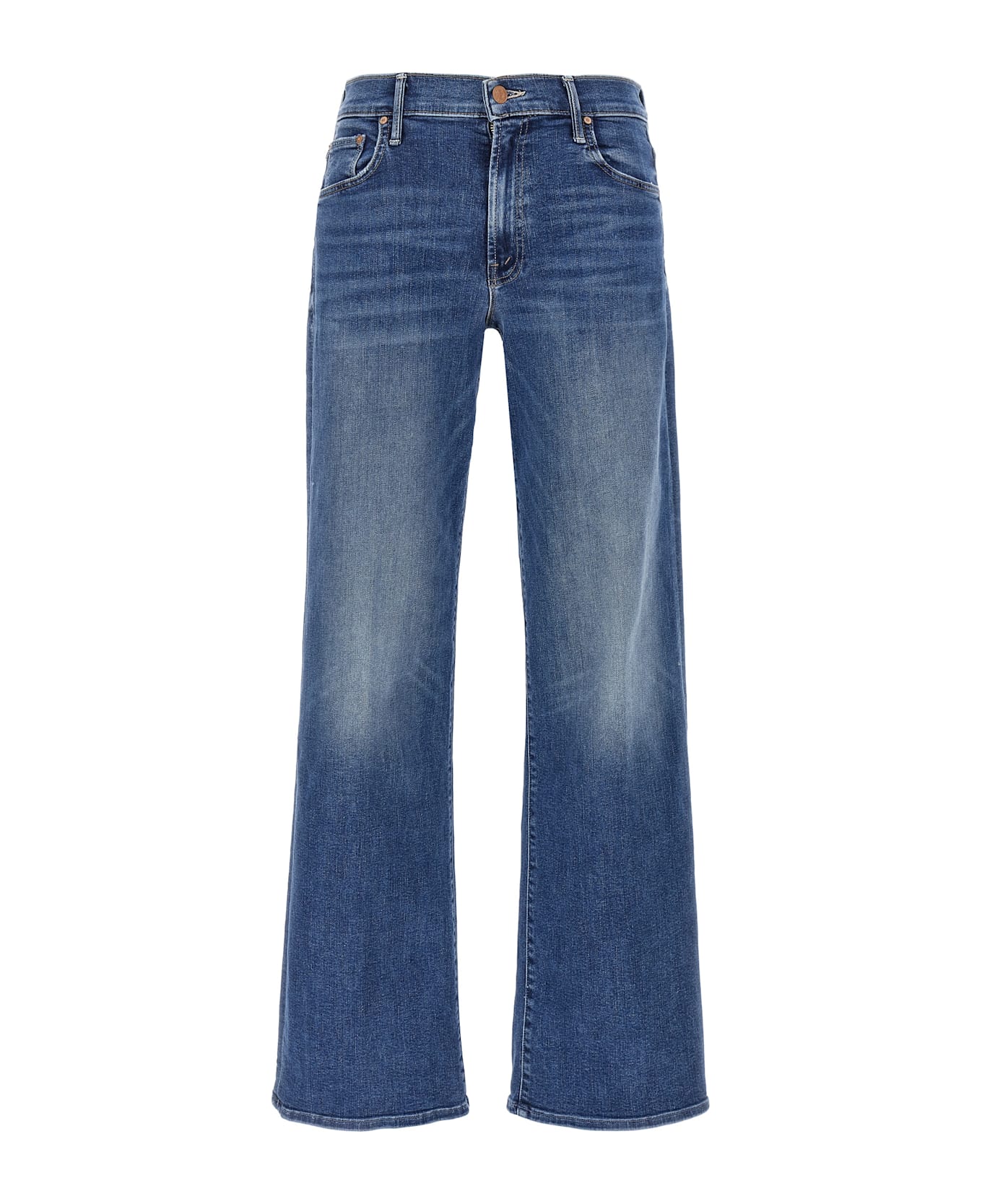 'The Mid Rise Maven Sneak' stonewashed stretch cotton denim blend jeans, mid-rise model with wide leg, zip and front button closure, five pockets.