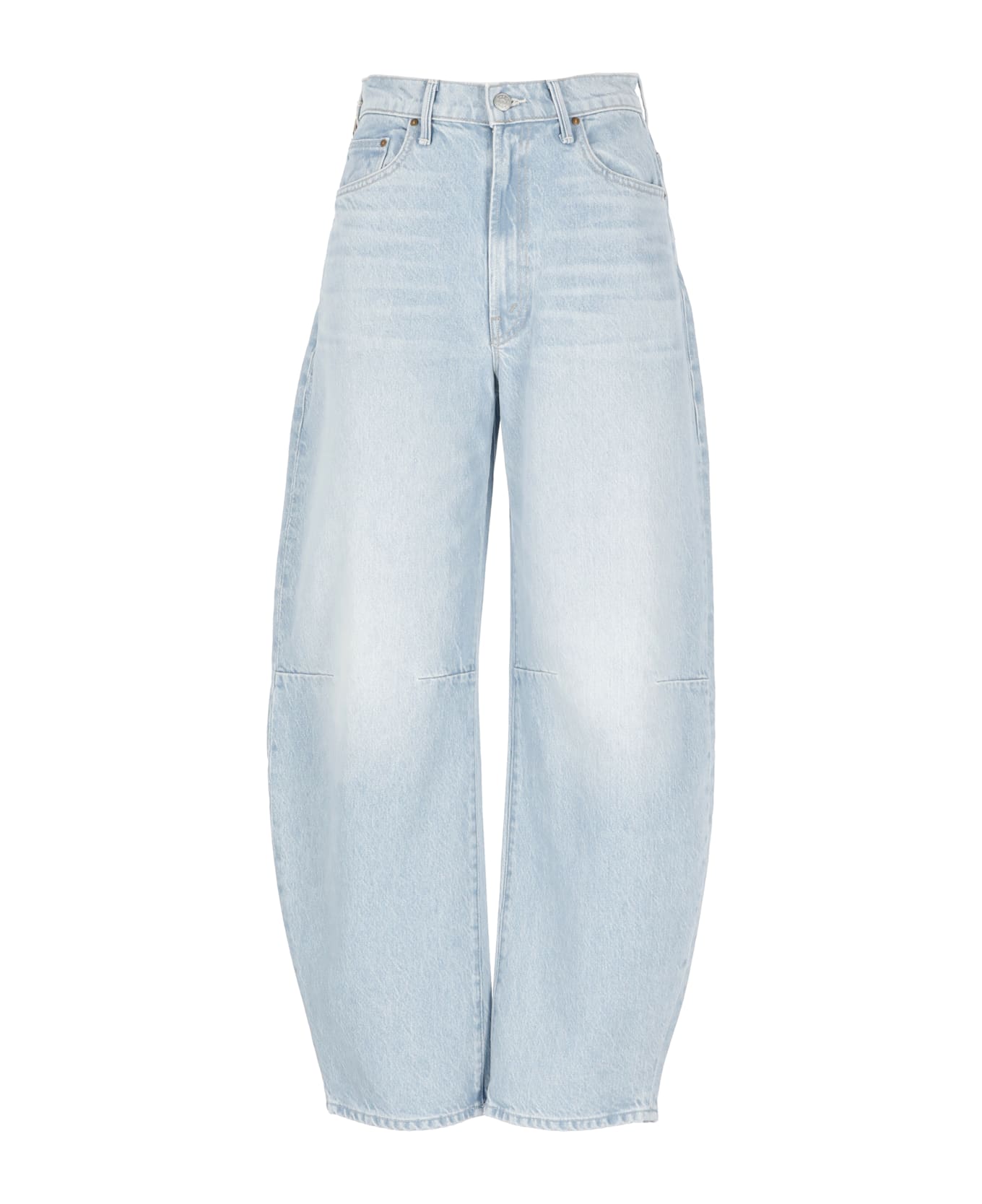 - Light blue Mother cotton jeans for woman - Belt loops - Front zip and logoed button fastening - Five pockets - Wide leg