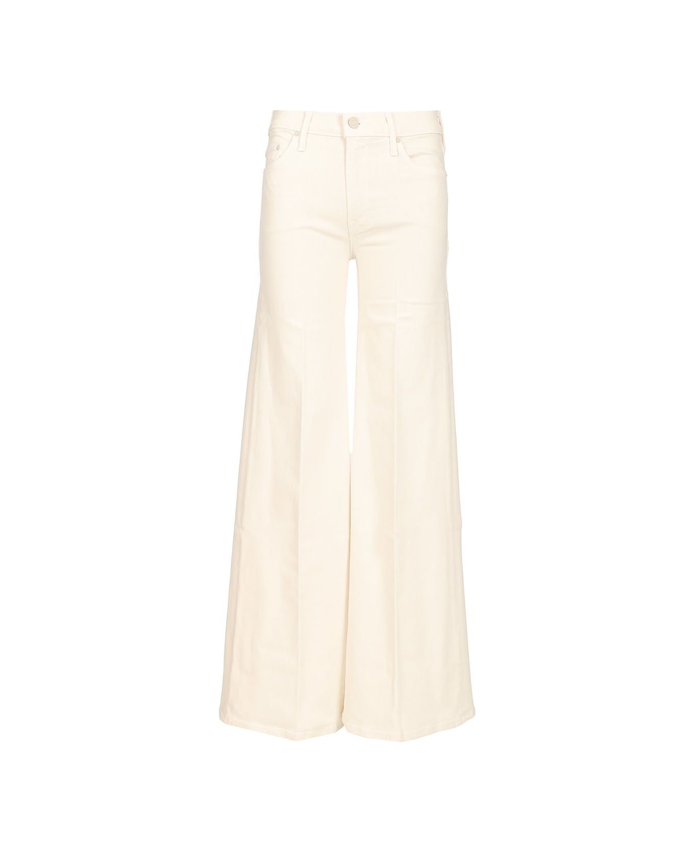 "Twister Skimp" trousers in stretch cotton blend by Mother, with a puffed hem, high waist, and wide, flared leg