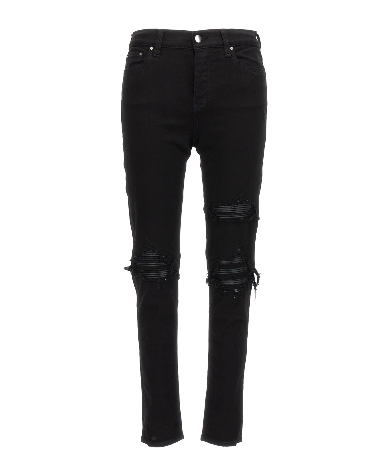 'VISCOSE1' stretch cotton denim jeans with destroyed details, patch inserts, button closure and five pockets.