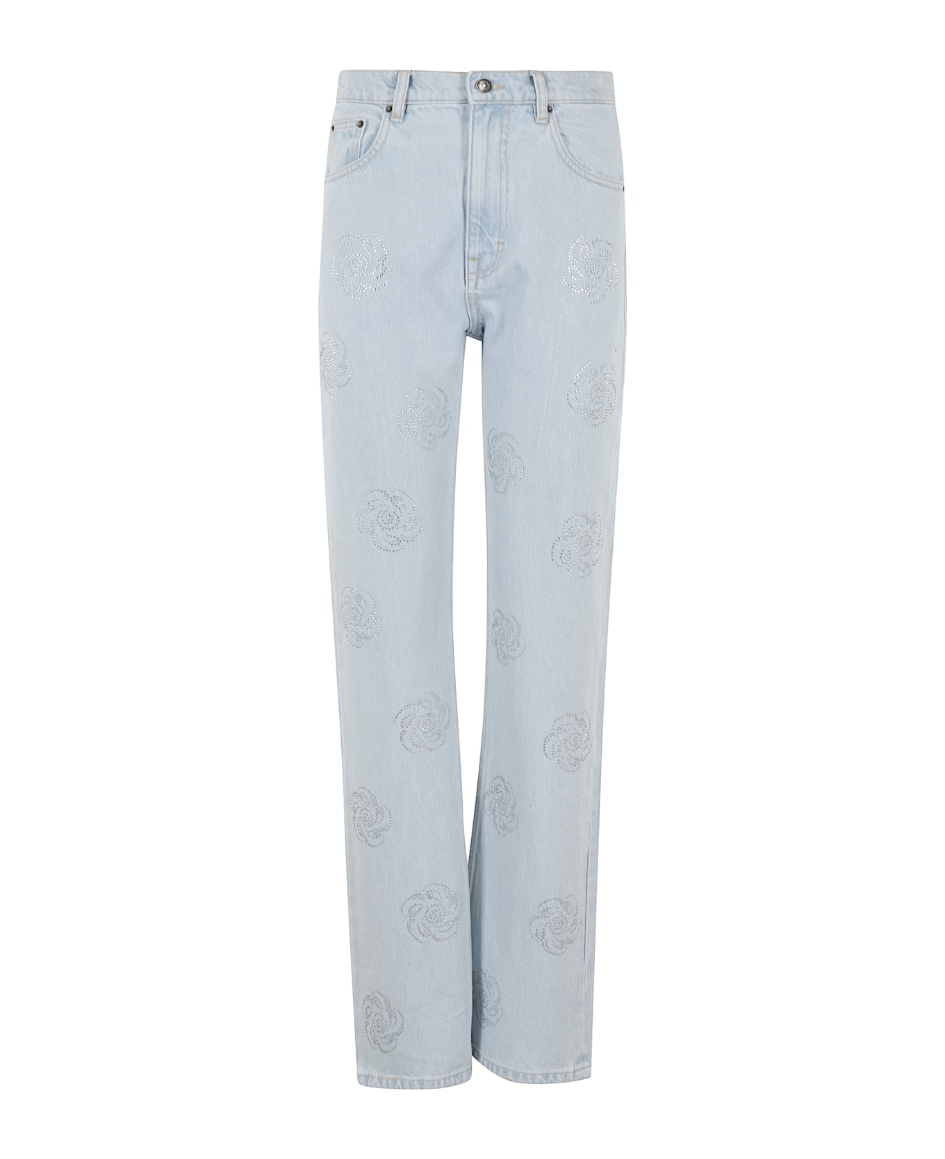 Stud Top - Rotate - Light blue color - Cotton denim fabric with rhinestone roses - High waist with belt loops - Straight leg - Five-pocket style - Regular fit