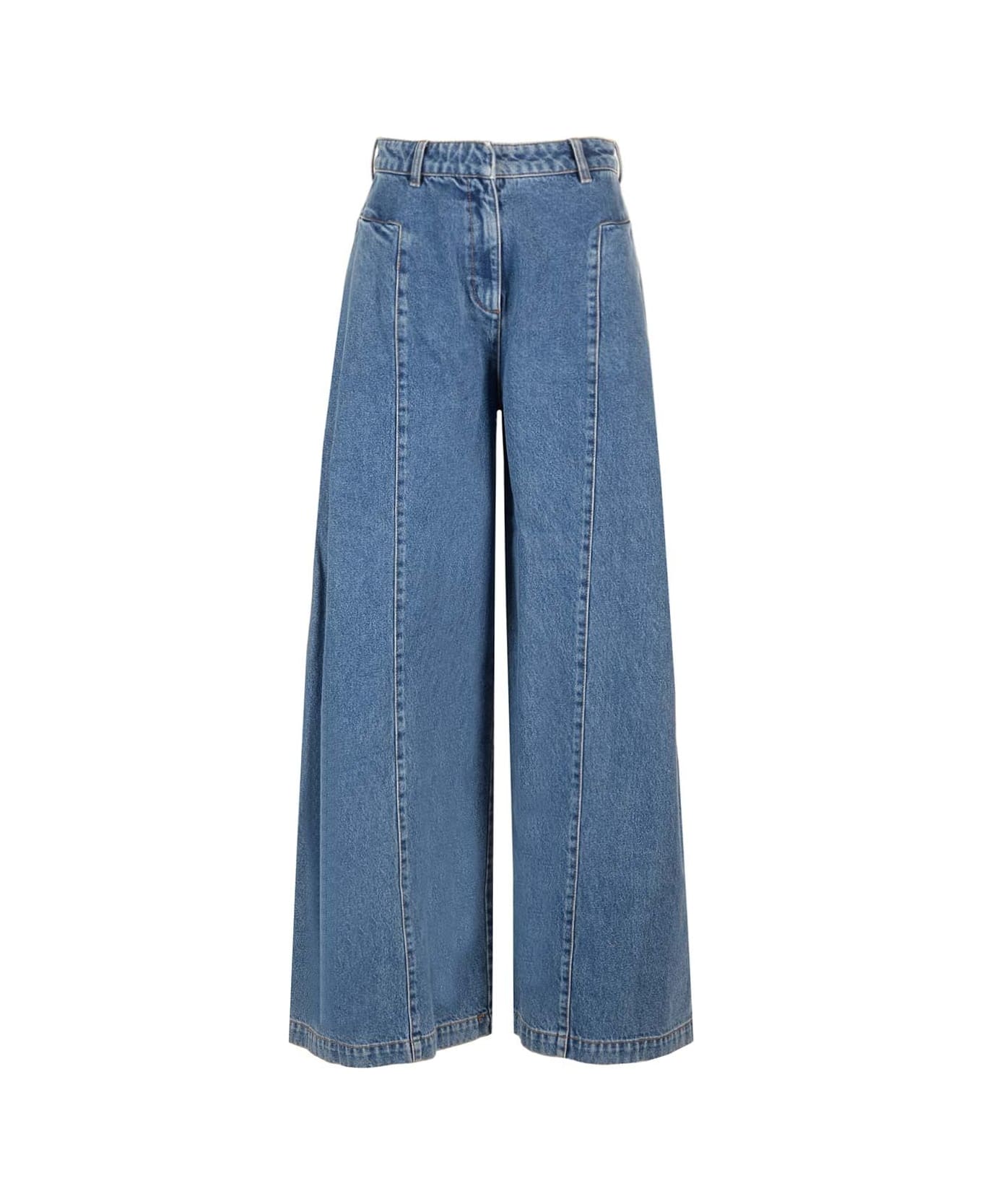 Medium wash jeans from Remain with side insert for greater width, medium waist with belt and belt loops, side pockets, hidden closure.