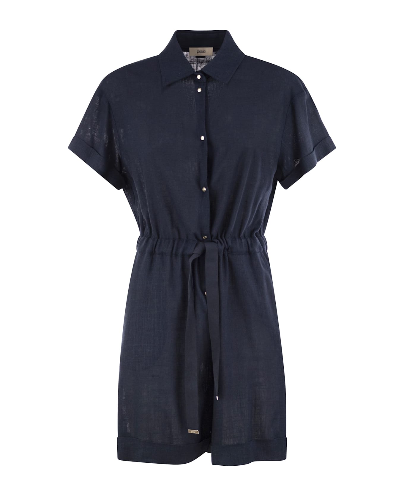 Linen-blend gauze jumpsuit with a light and fluid weave, ideal for the warmer season. The model has a sophisticated line with a collar, soft shorts that gently follow the movements and a grosgrain drawstring to modulate the fit. - Regular fit - Shirt collar - Short sleeves - Grosgrain drawstring at the waist - Flat pockets - Flap at hem - Snap button closure - Made in Italy DESIGNER ID: TT000005D12689 9210