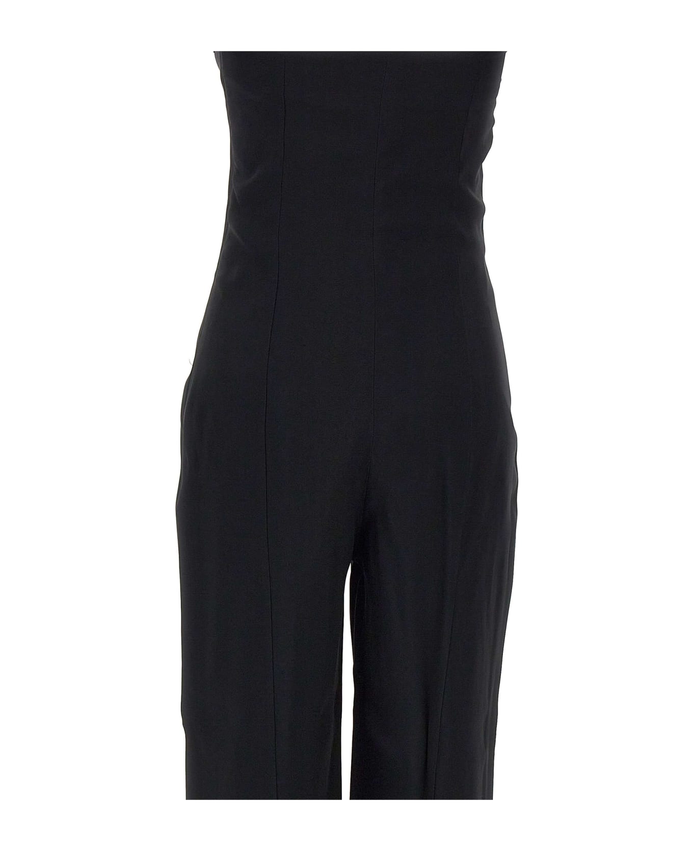 Federica Tosi viscose blend jumpsuit, black, strapless, sweetheart neckline with padding on breast, flared leg, side zip fastening, slim fit, perfect for a feminine look. Made in Italy. Composition: 50% Acetato, 50% Viscosa; Tessuto Secondario: 60% Acetato, 40% Viscosa