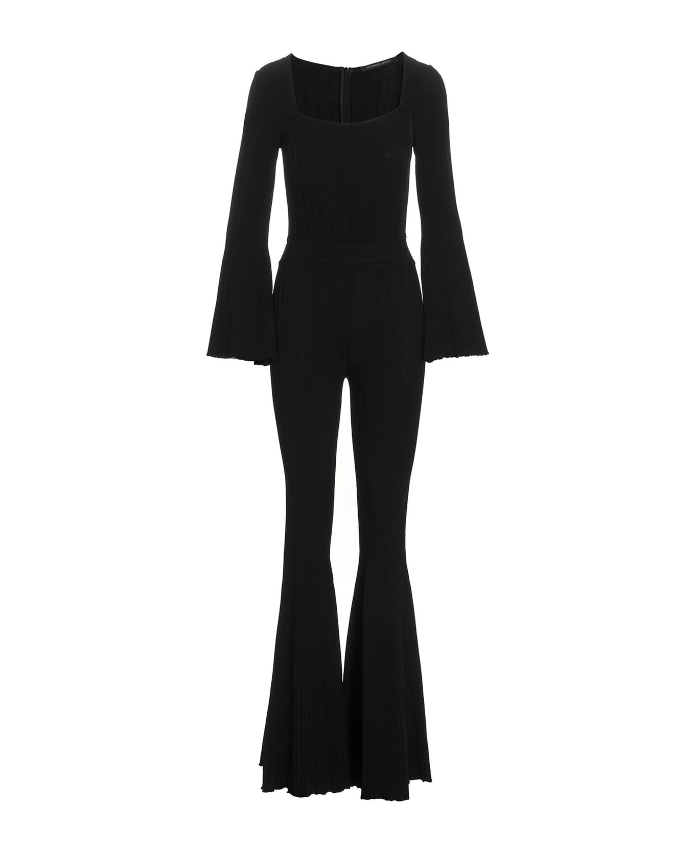 'Lorella' jumpsuit with wide pants, scoop neck and vertical ribbed fabric. fabric.