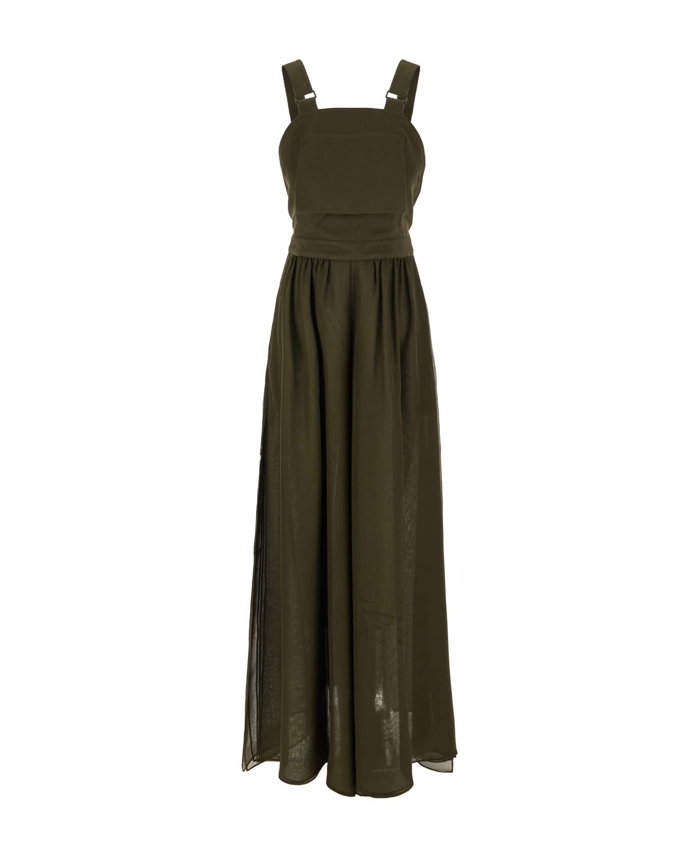 Military Green Cotton And Silk Jumpsuit