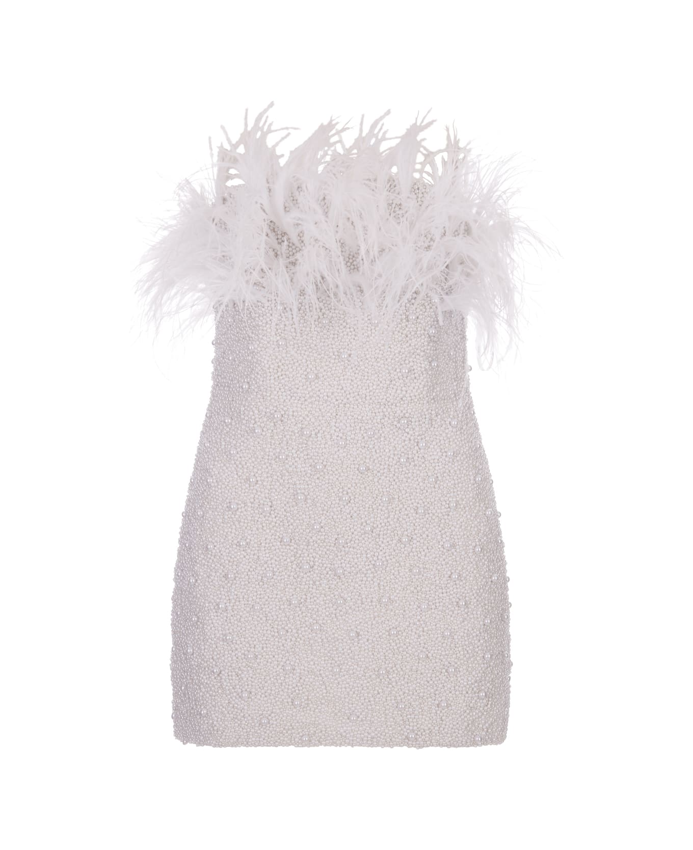 Ronit Pearl mini dress by Retrofete made of white fabric and embellished with all-over pearl embellishments and a matching feathered neckline. Sleeveless and fitted model. Concealed zip fastening.