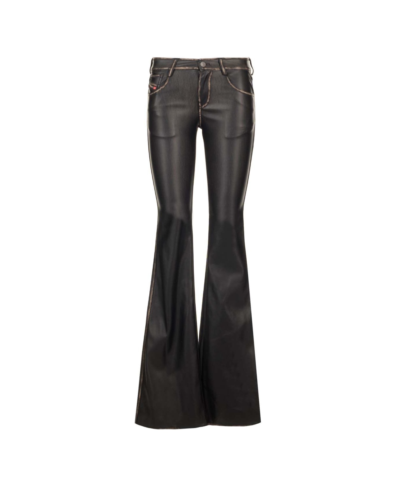 "P-Stellar" trousers in leather-effect fabric from Diesel, with flare leg, contrasting faded effect profiles, low waist, slim fit. Composition: 100%PL+COATING100%PU