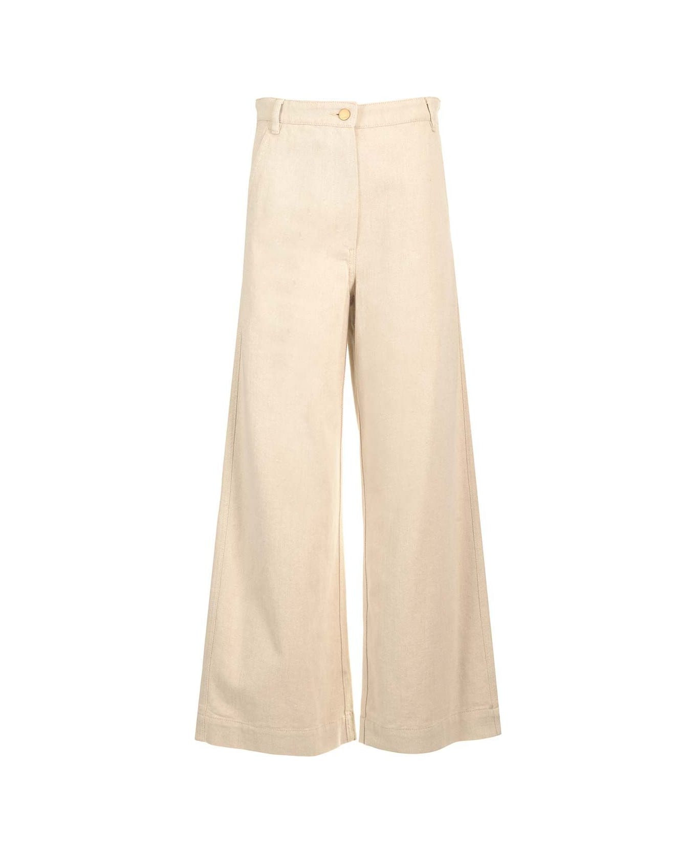 "Sorriso" beige wide-leg trousers by 'S Max Mara, in cotton nylon canvas, high-waisted, belt loops, pockets on the sides and on the back. Zip and gold chrome button fastening. Composition: 81% Cotton, 19% Polyester