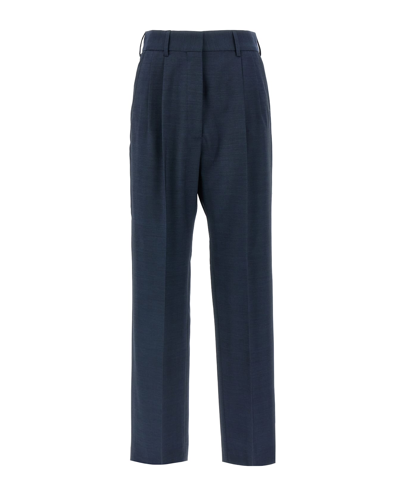 'Aile Everyday' wool trousers with slightly wide straight leg style, front stretched pleat, hook and button zip closure, pences and pockets.