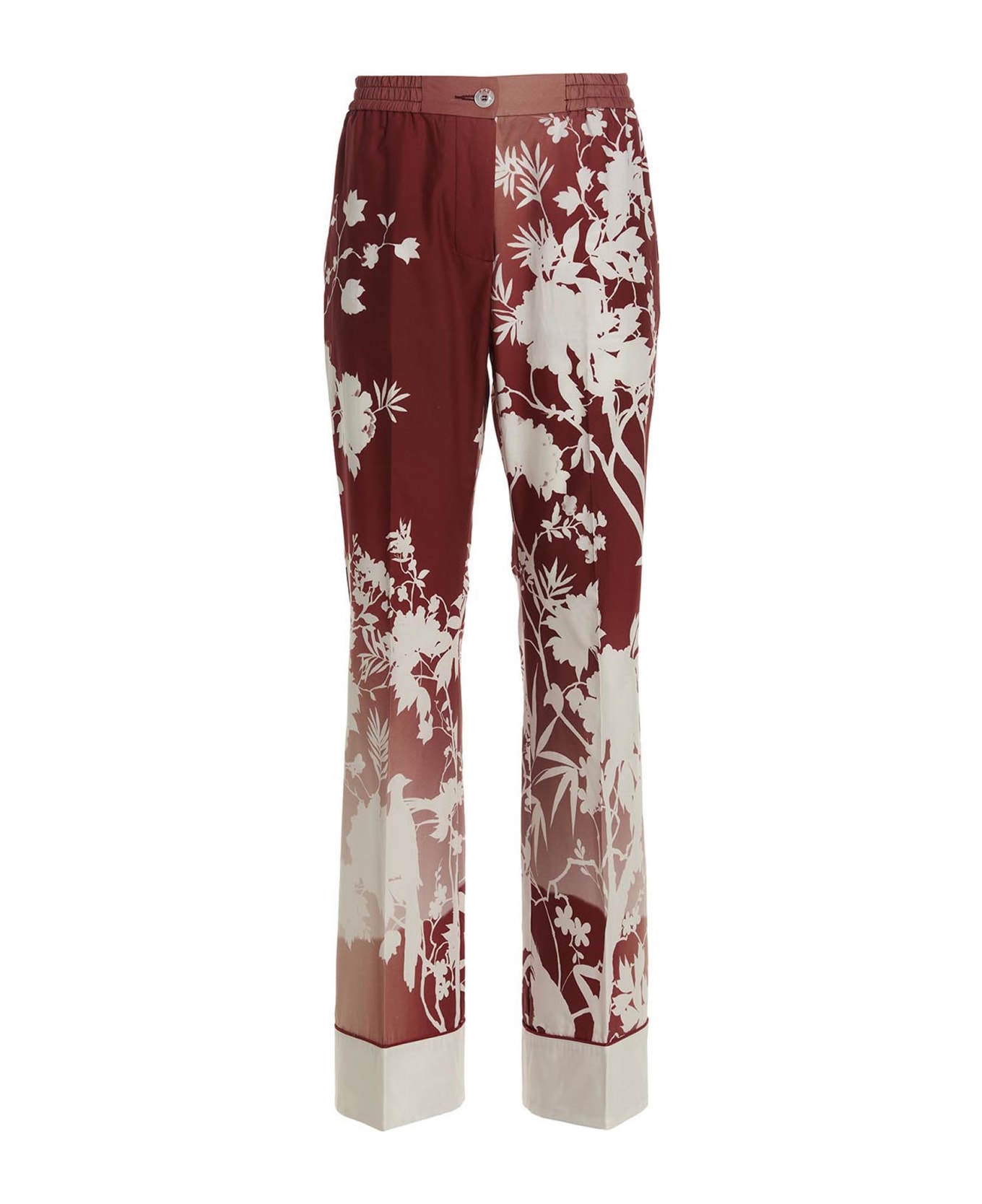 Alimede' cotton pants with all over print, an elastic at the waist, a button closure, pockets, flared leg with contrast piping on the leg bottoms. Composition: 100% cotton