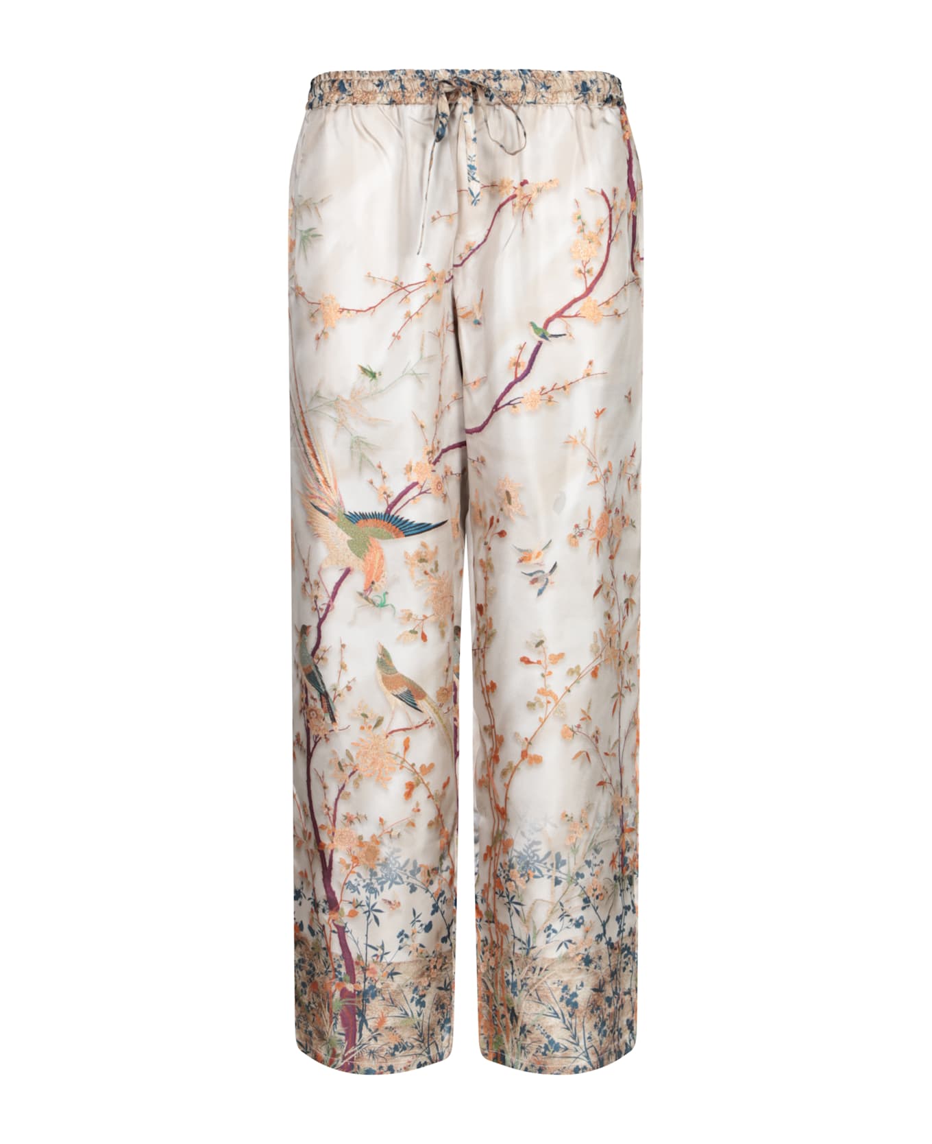 Explore casual refinement with these exotically designed trousers by Pierre-Louis Mascia. Crafted to ensure both comfort and style, they feature a lively floral print embellished with bird details, perfect for a distinctive look.