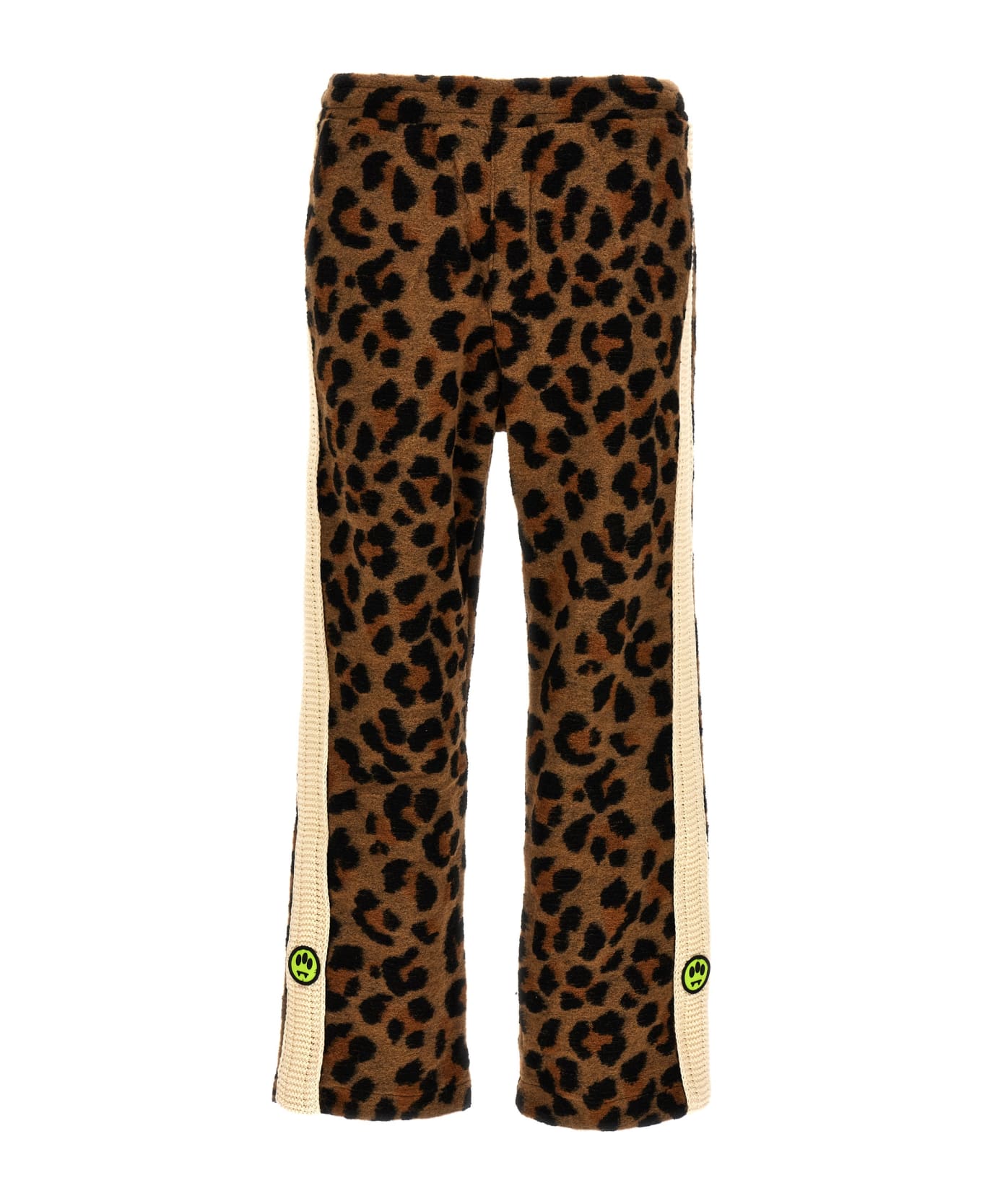 Knit pants with animal print, drawstring at the waist and side crochet bands.