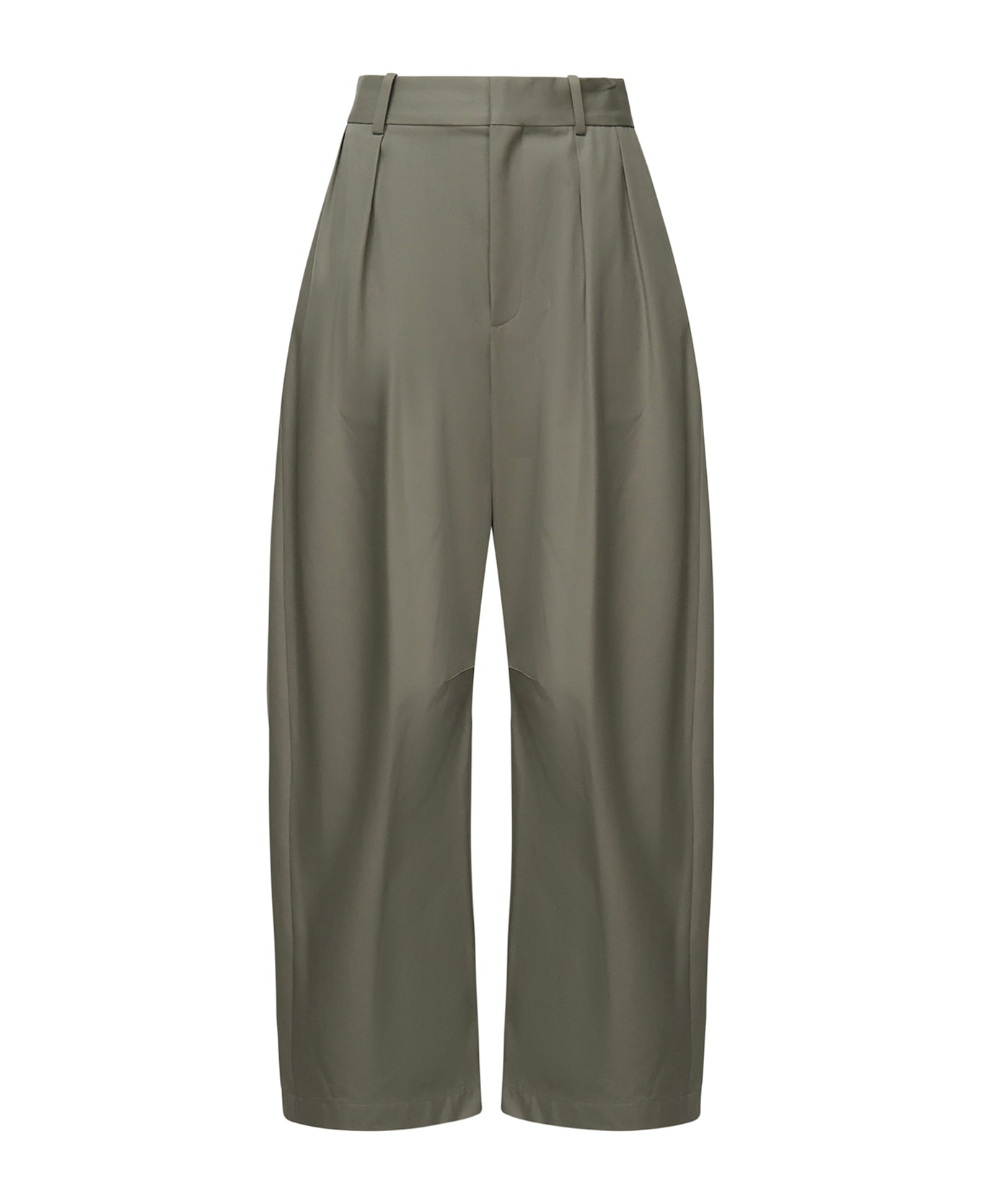 -Made of cotton and silk gabardine -Wide leg -Mid-rise -Back welt pocket with button -Relaxed fit -Size shown in photo is 36 IT -Made in Italy -Color: Khaki Green
