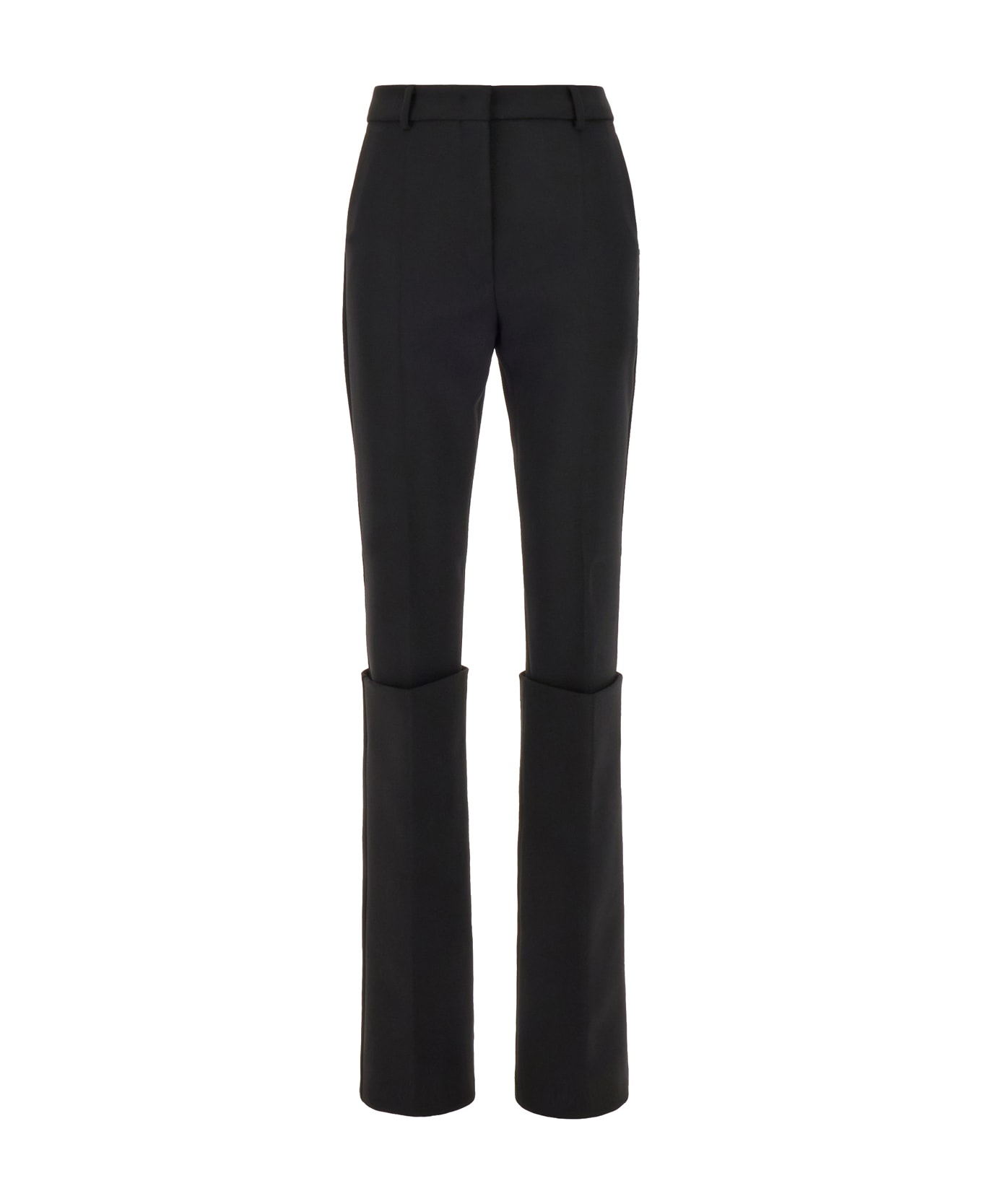 Pant realized in stretch polyester blend enriched by tonal fabric insert on the hemline and jewel embellishment on the side. -Belt loops at the waist -Concealed zip, hook and button closure -Slant pockets and two slit pockets at the back -Central ironed pleat