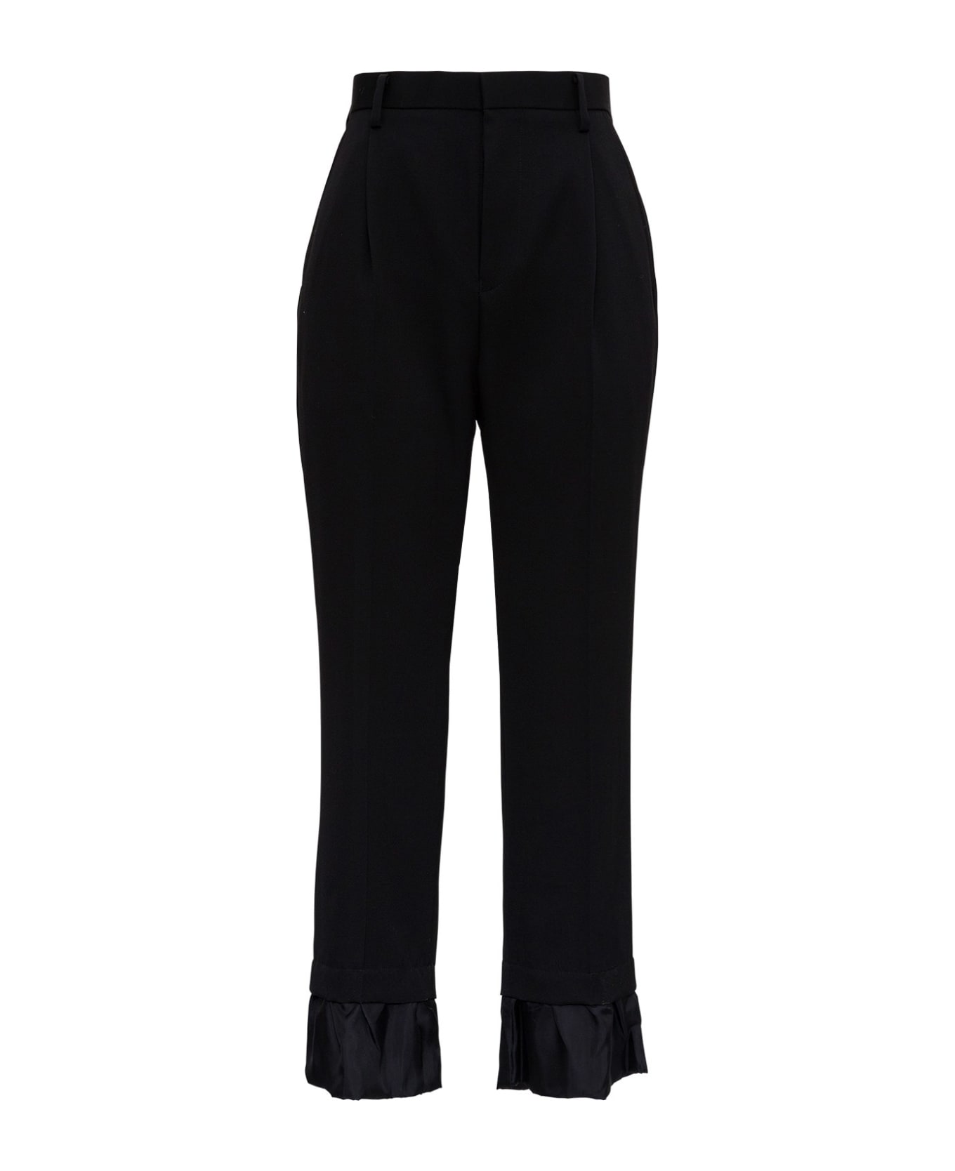 Trousers Black Wool Belt loops Back pocket with flap detail Satin bottom detail