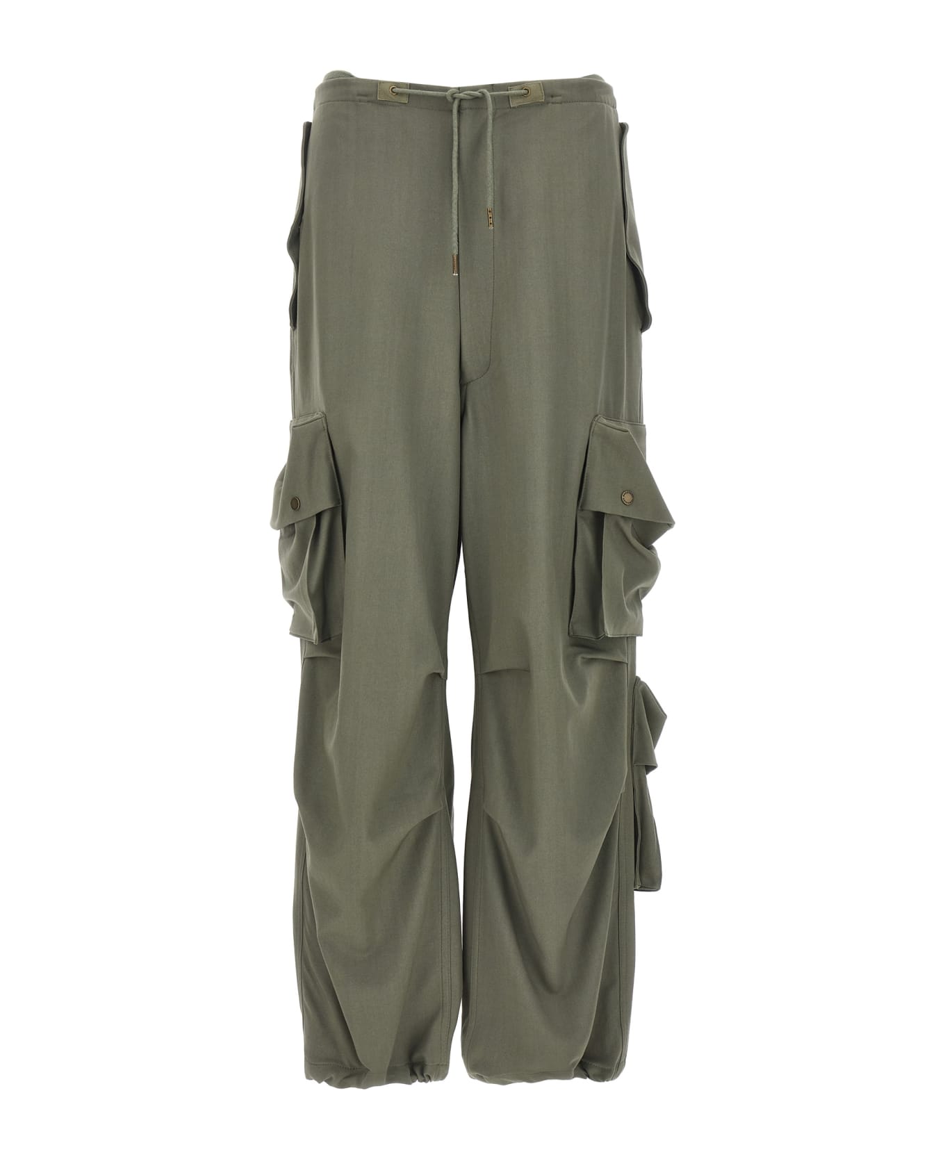 'Blair' cargo pants in wool twill, wide leg and low waist, zip and button closure and adjustable drawstring at the waist, pockets, adjustable drawstring at the bottom of the leg. Composition: 100% virgin wool