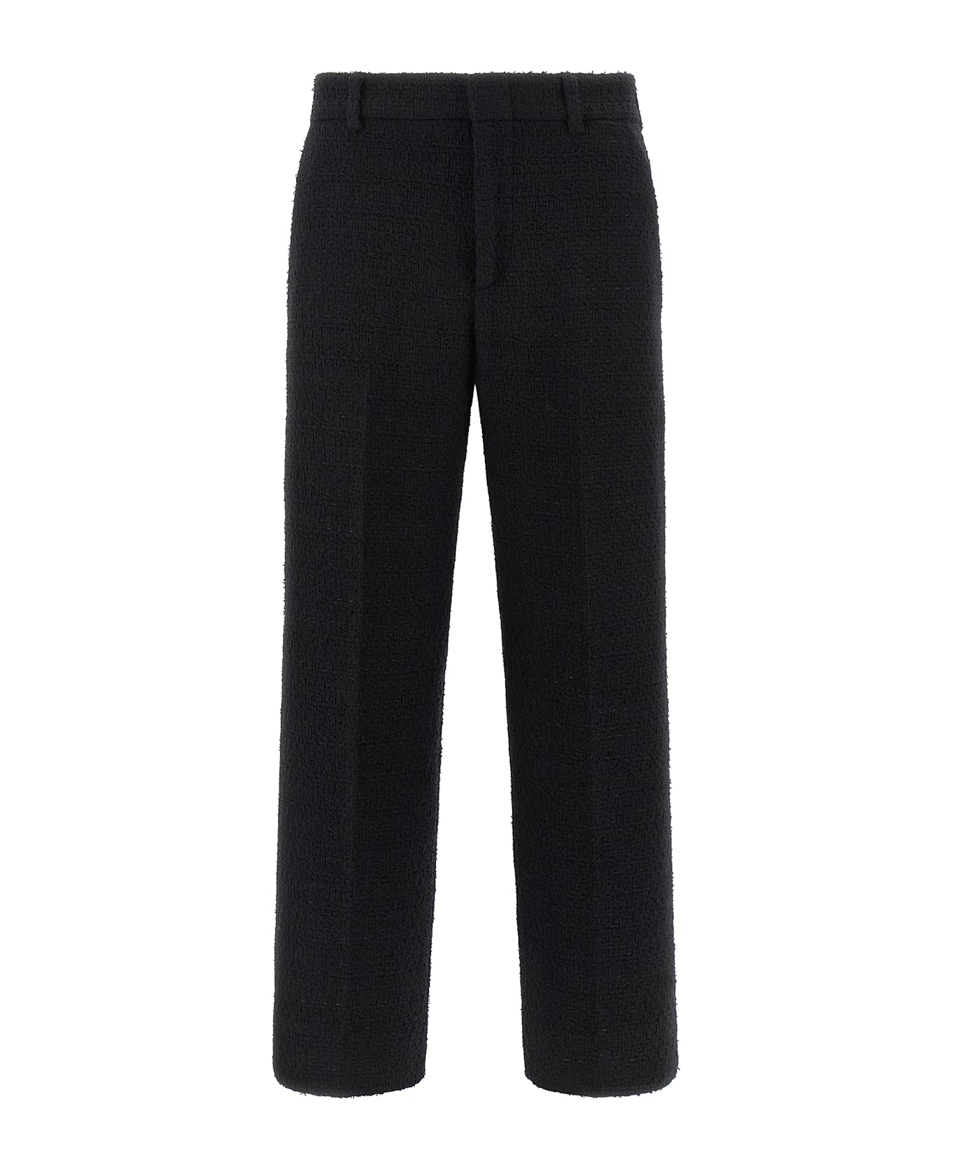 Bouclé wool trousers, unlined, stretched pleat, straight leg, zip hook and front button closure, pockets. Composition: 57% wool, 43% polyamide