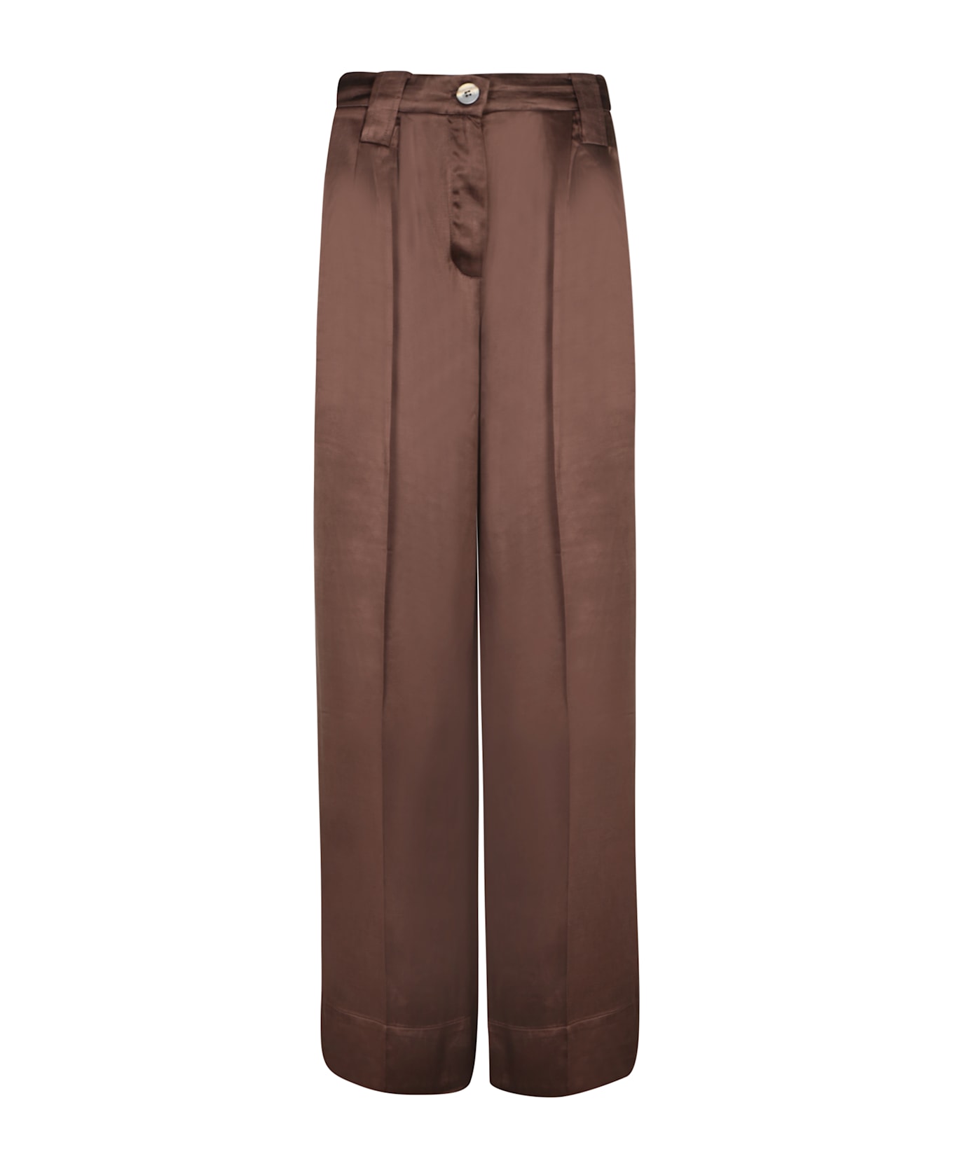 A wardrobe essential marrying luxury and comfort, these Ganni trousers in soft satin boast a relaxed, flowing silhouette, perfect for both formal pairings and casual chic outfits.