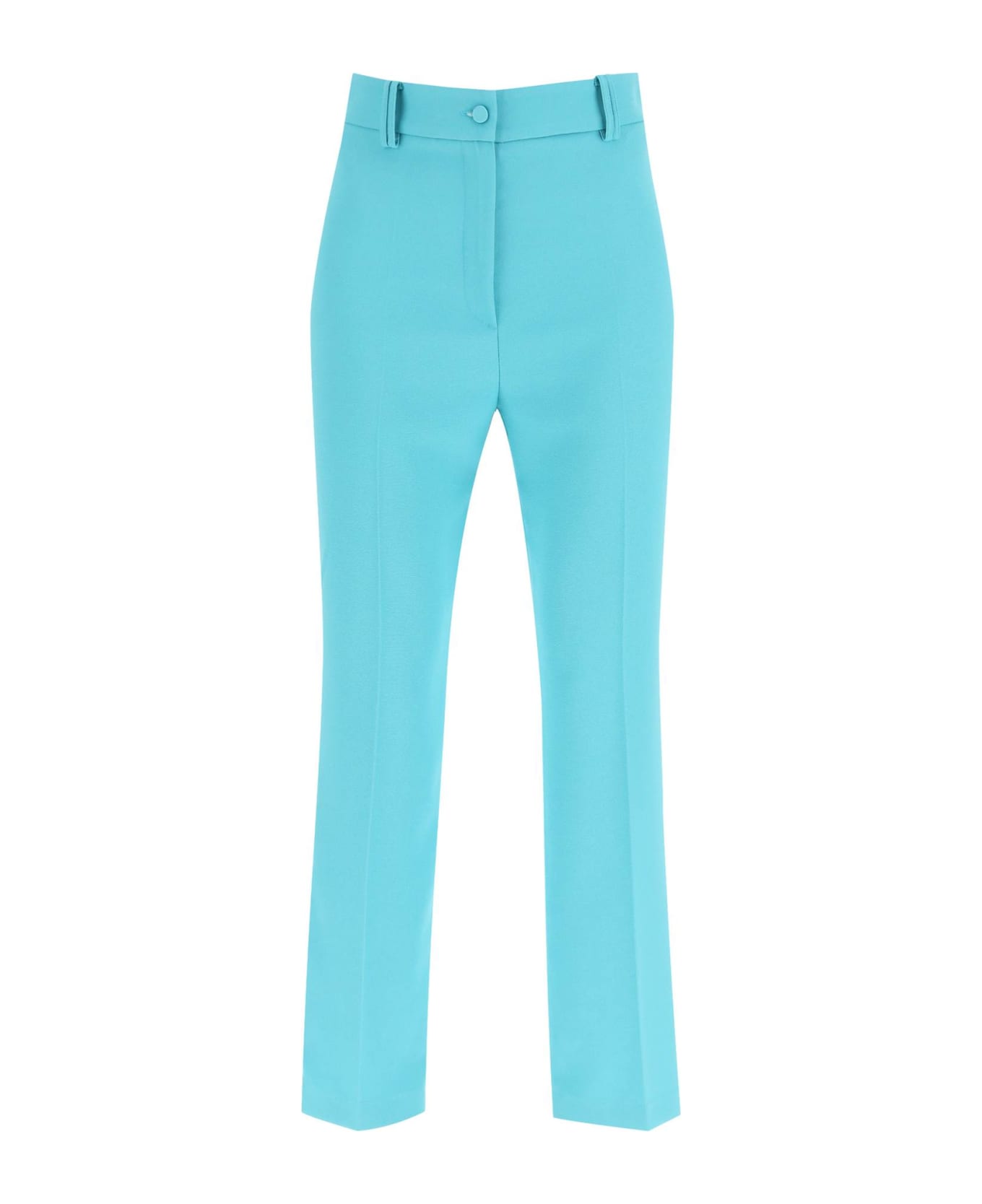 Hebe Studio straight-cut cady trousers, featuring zip fly with self-cover button, front pressed crease and double belt loops. Rear welt pockets. Regular fit. The model is 177 cm tall and wears a size IT 40.
