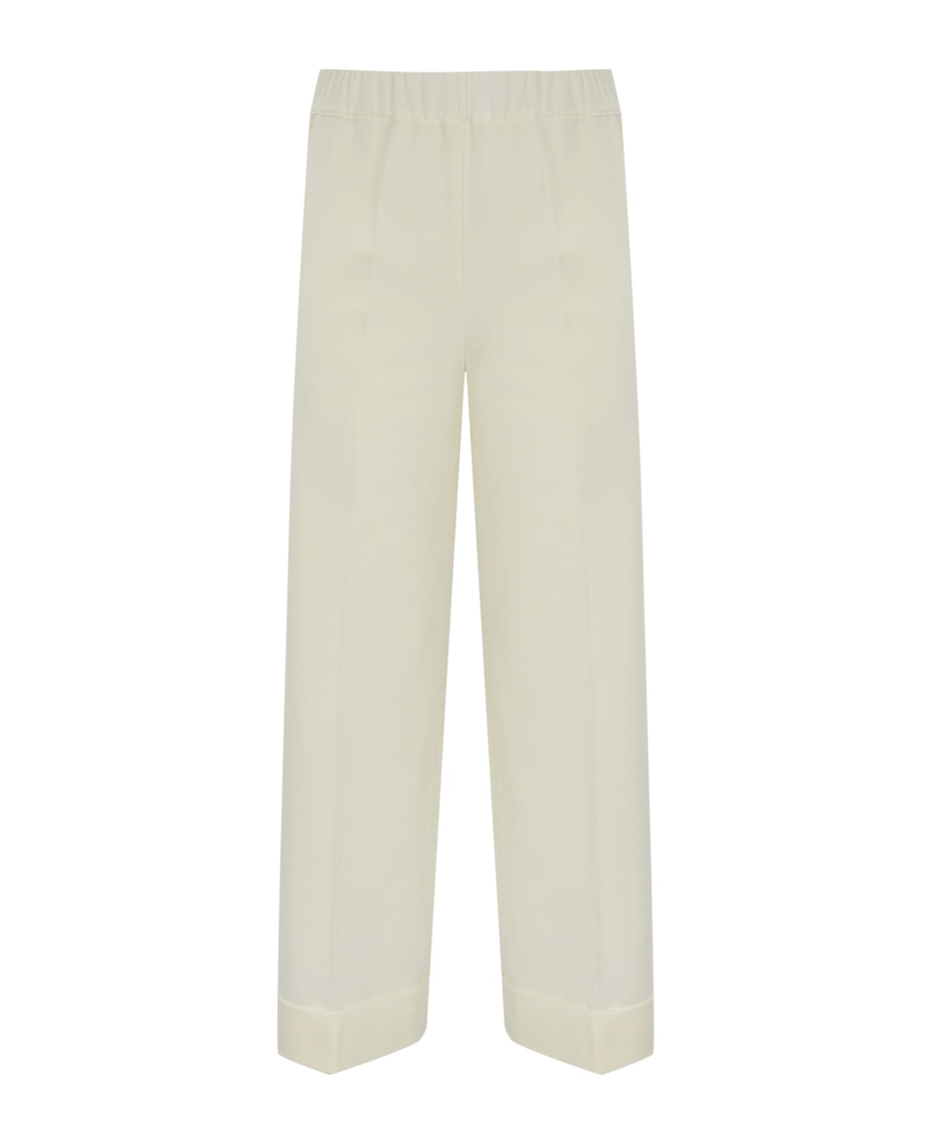 women's trousers: cady fabric elastic waist turn-up bottom slightly wide leg regular fit composition: 90% polyester, 10% elastane