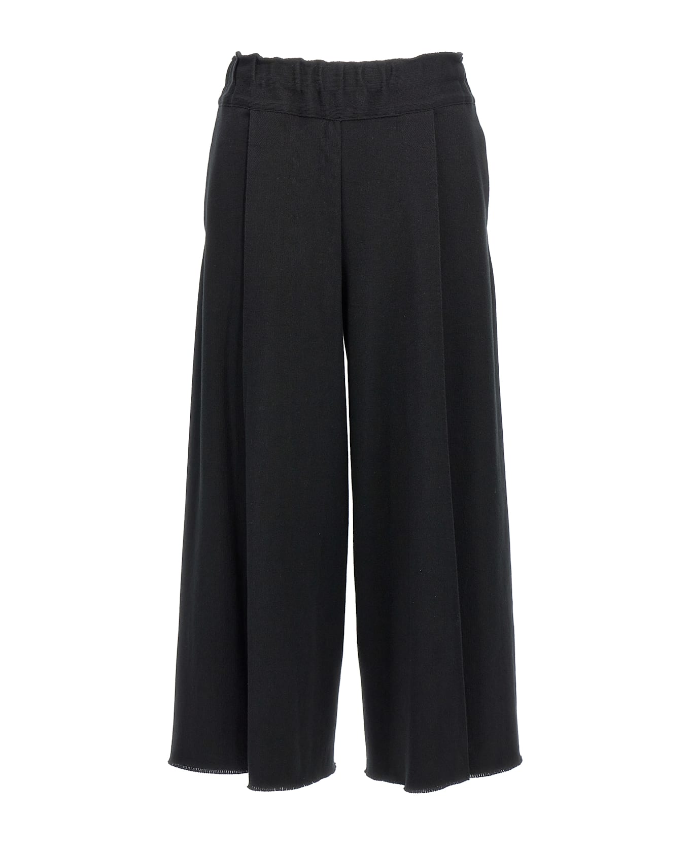 'Campagne' cotton blend knit pants with elastic waistband, pockets, wide leg with front pleats, fringed hem.