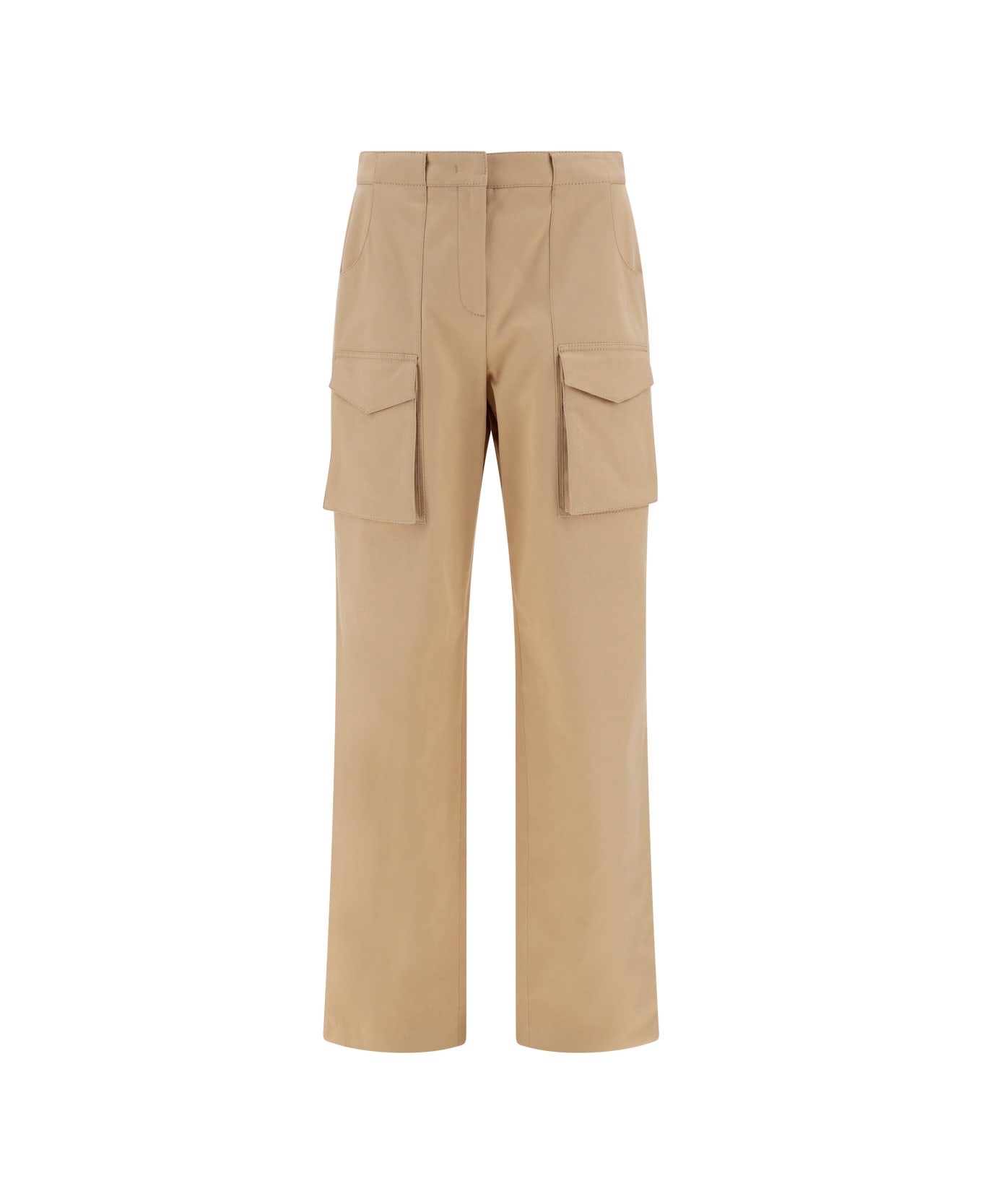 Cotton cargo pants by ermanno scervino, front button and zipper closure, waistband loops, two side slash pockets, two front patch cargo pockets with flap, two back patch pockets with flap.