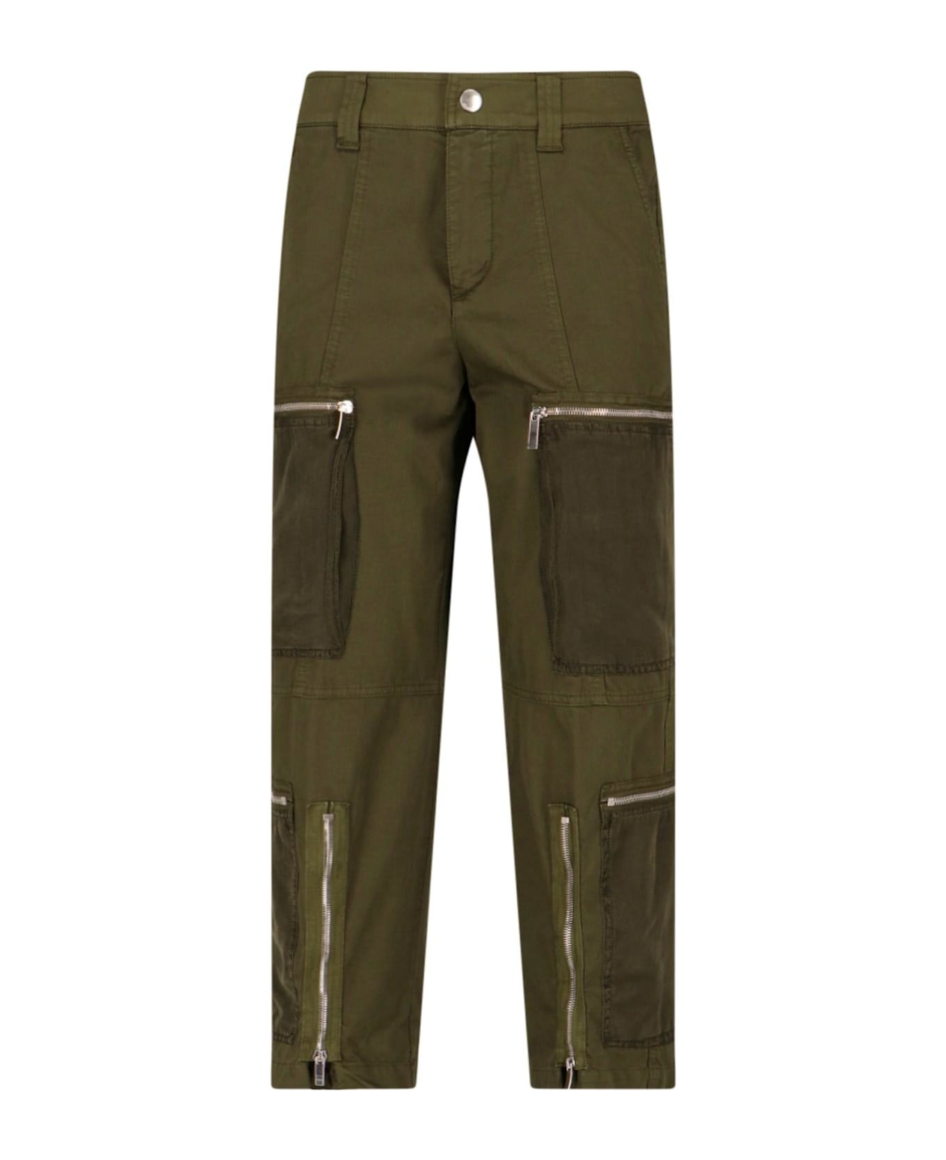 Seafarer cargo pants in green cotton blend with mid waist, belt loop, button and zip closure, four maxi contrast pockets at the side, zipped hem.