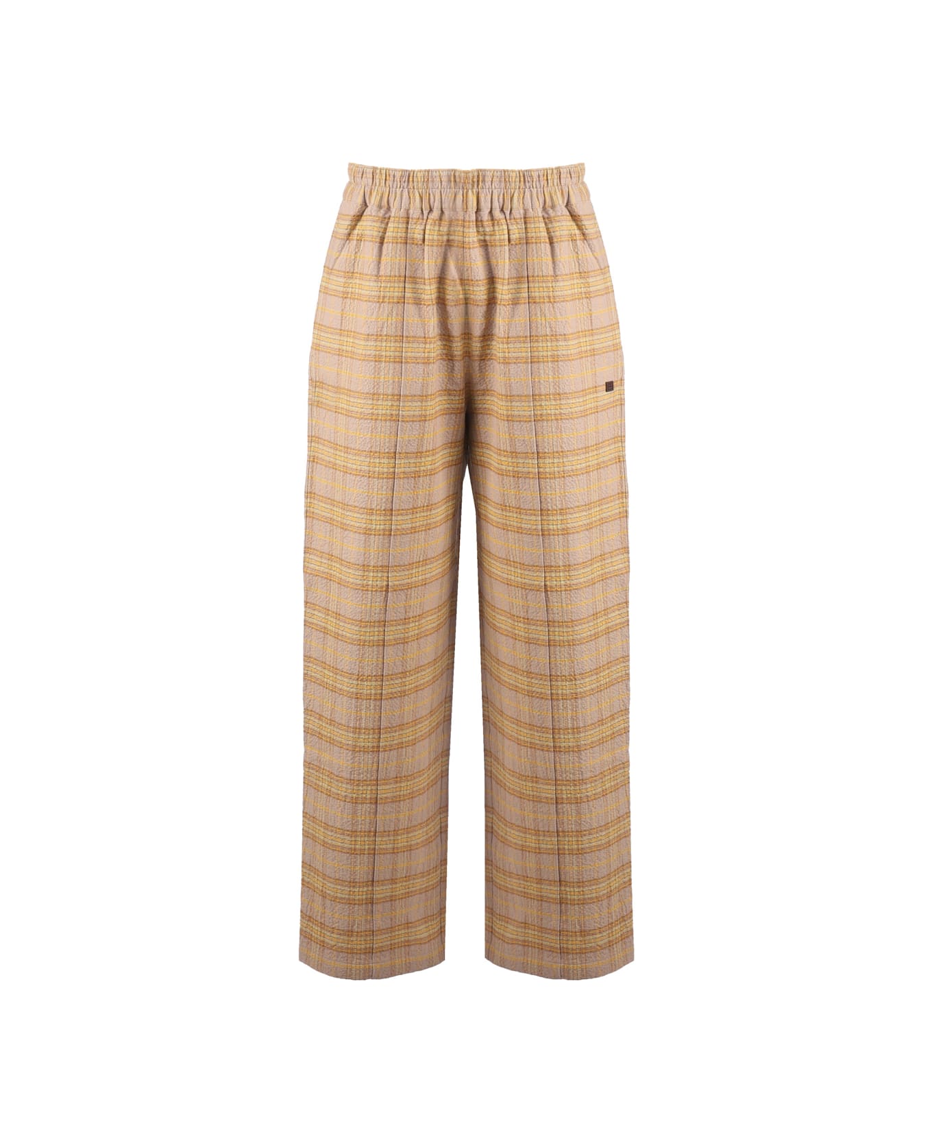 Orange, beige Check Printed Trousers from Acne Studios -Low waist -Long length -Check print -Front micro face logo patch -Back face logo embroidery -Elasticated waistband -Side seam pockets -Back patch pocket -Full lining -Colour: Orange, Beige -100% Cotton