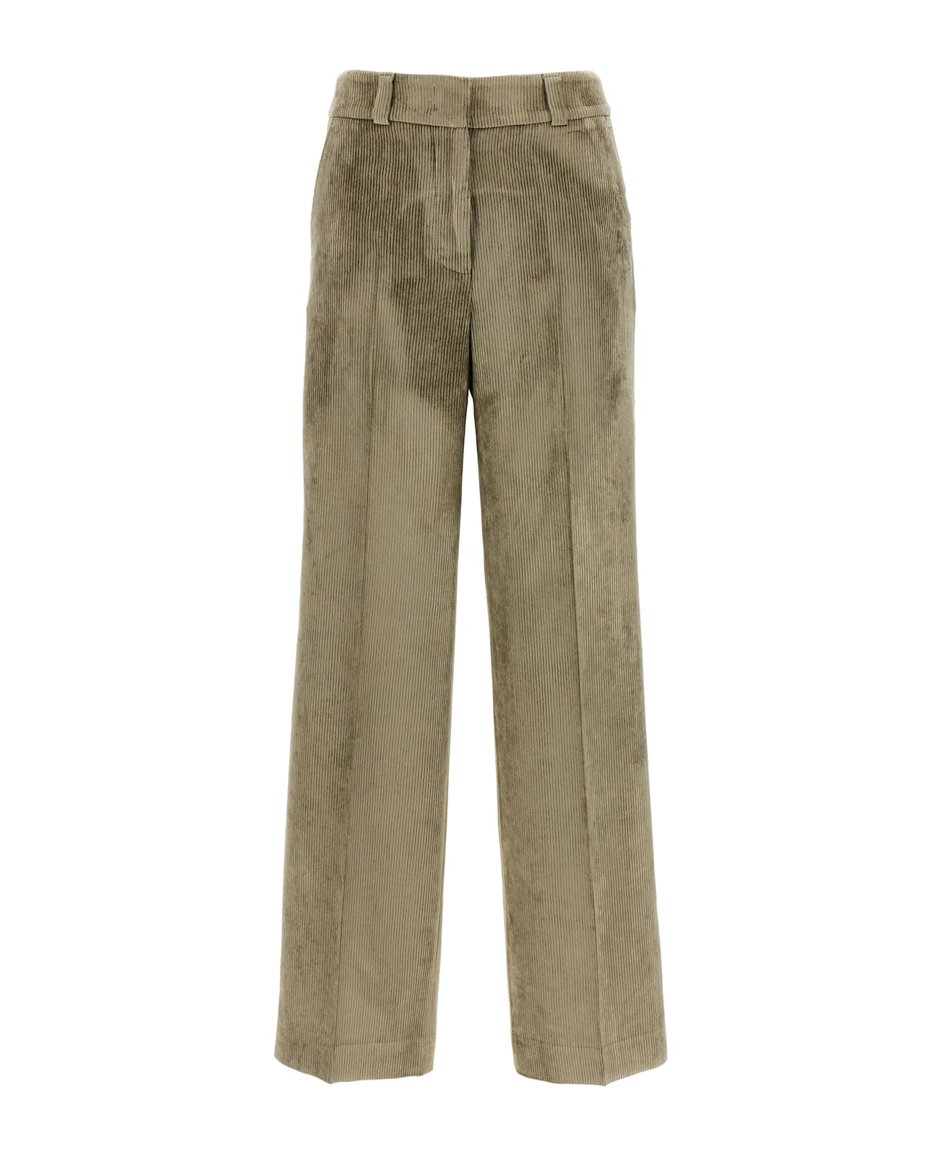 1000 stripes corduroy trousers, low waist and straight leg, stretched pleat, zip, hook and front button closure, pockets. Composition: 98% viscose, 2% elastane
