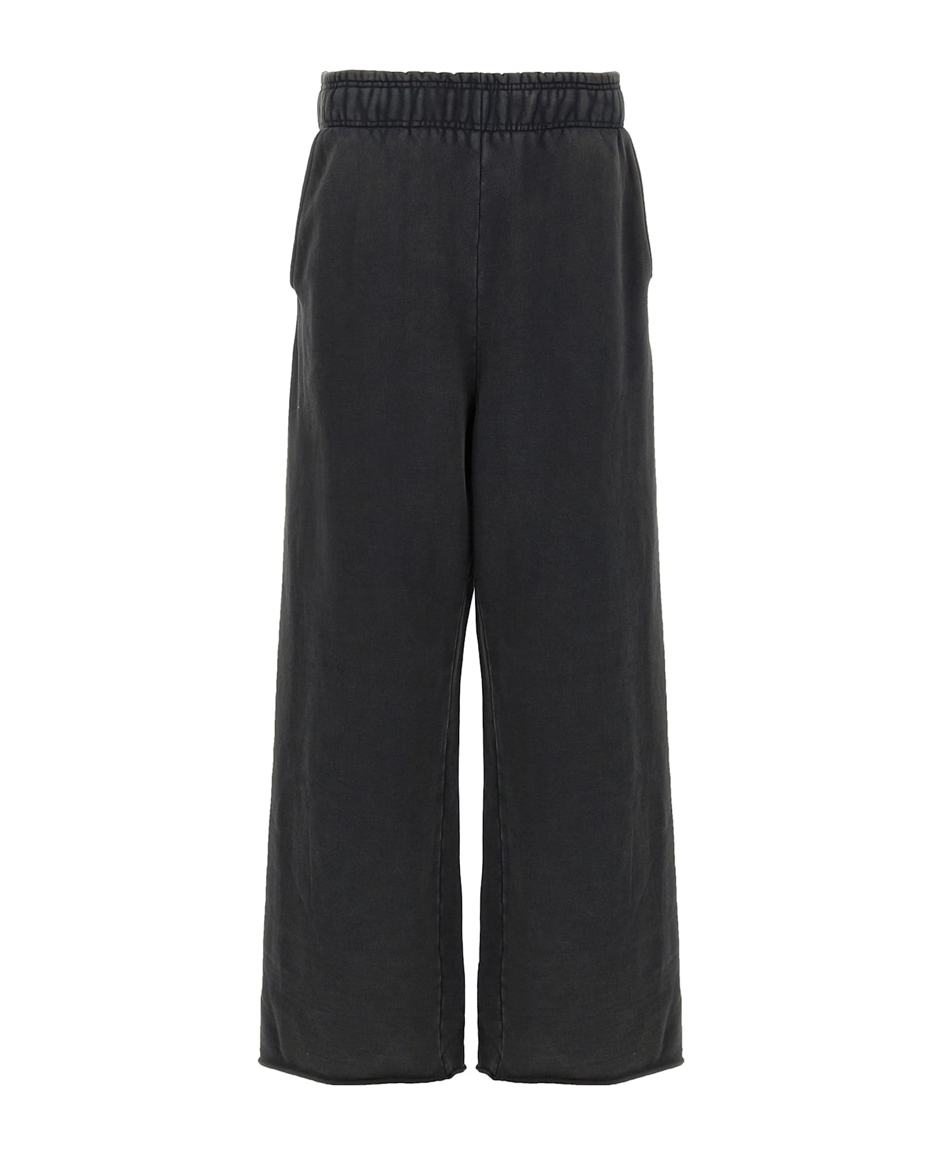 Faded cotton pants, loose leg, raw cut, adjustable drawstring elastic waistband, pockets.