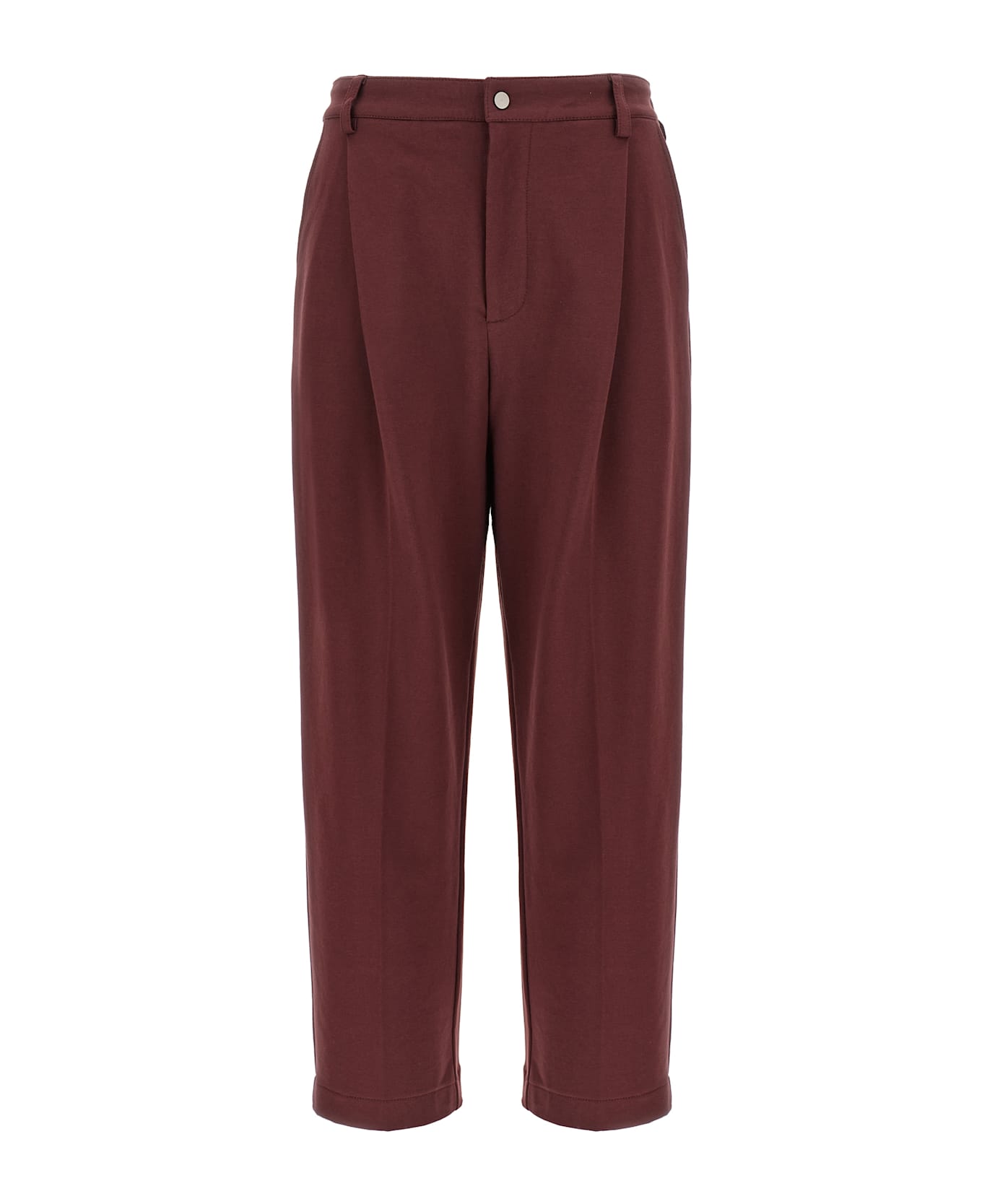 Crop pants in light stretch cotton sweatshirt, front zip and snap button closure, pleat and expanded pleat, elastic waistband at the back, pockets. Composition: 98% cotton, 2% elastane