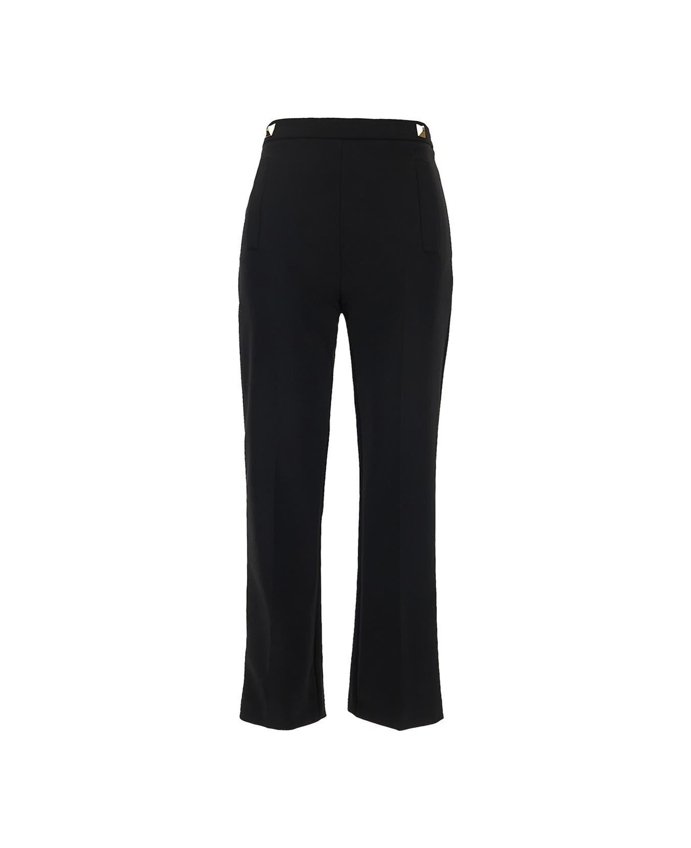 Elisabetta Franchi trousers in black polyester with metal golden studs on waist. The item is featured by a cropped cut, straight leg and two front welt pockets.