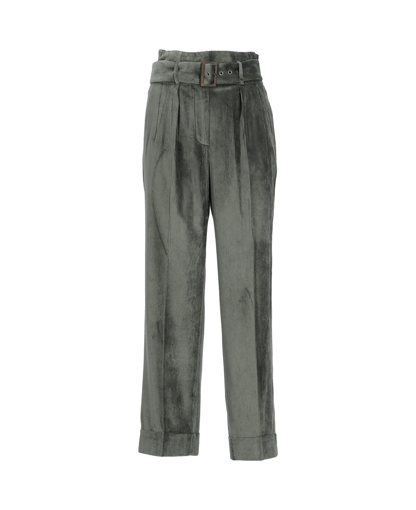 - Green Peserico curdoroy trousers for woman - Belt loops - Matching belt at waist - Two rear welt pockets - Front zip and hook fastening Composition: 98% Viscose, 2% Elastane Lining:, 61% Acetate, 39% Cupro
