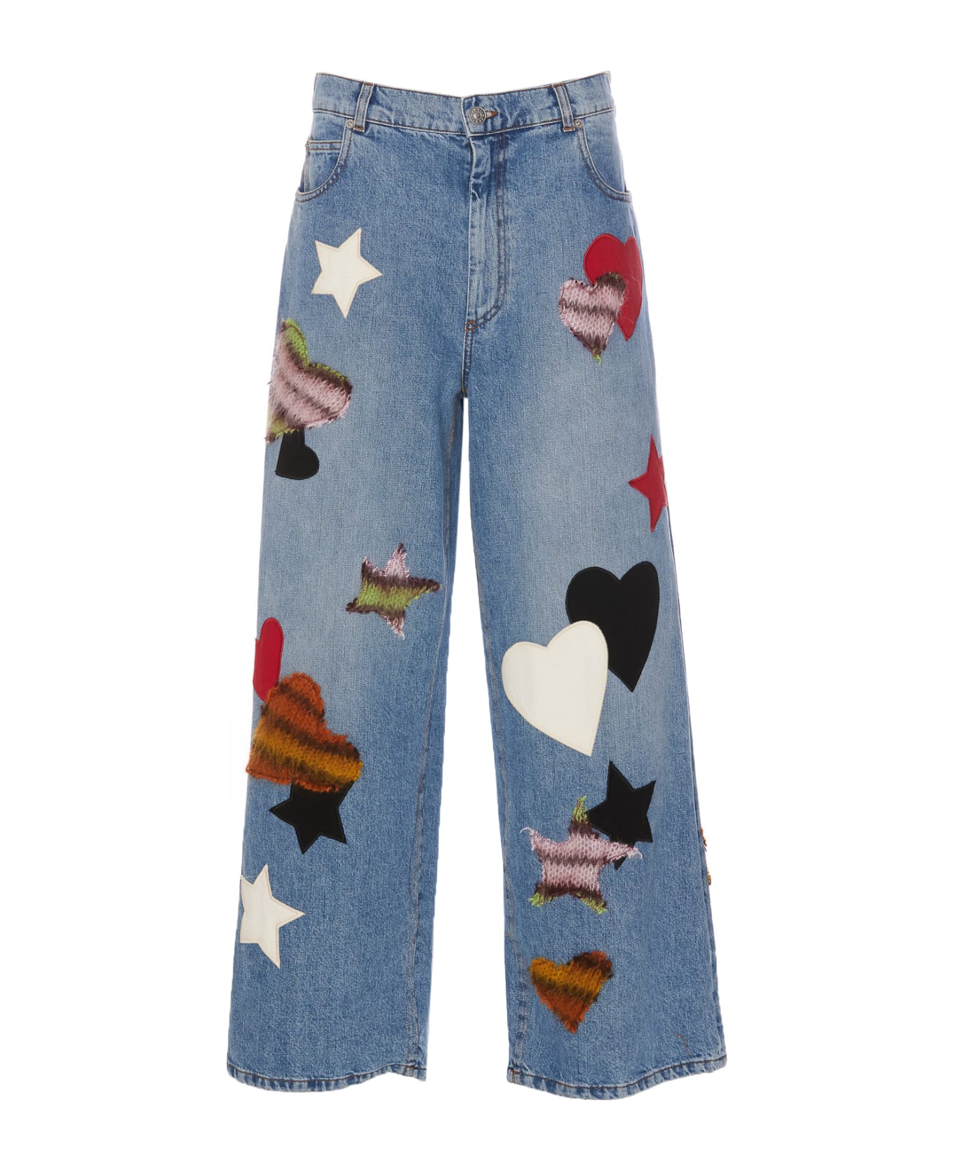 Marni denim jeans, zip and button closure, patches all over, regular fit, patch logo on the back Composition: 100% Cotton