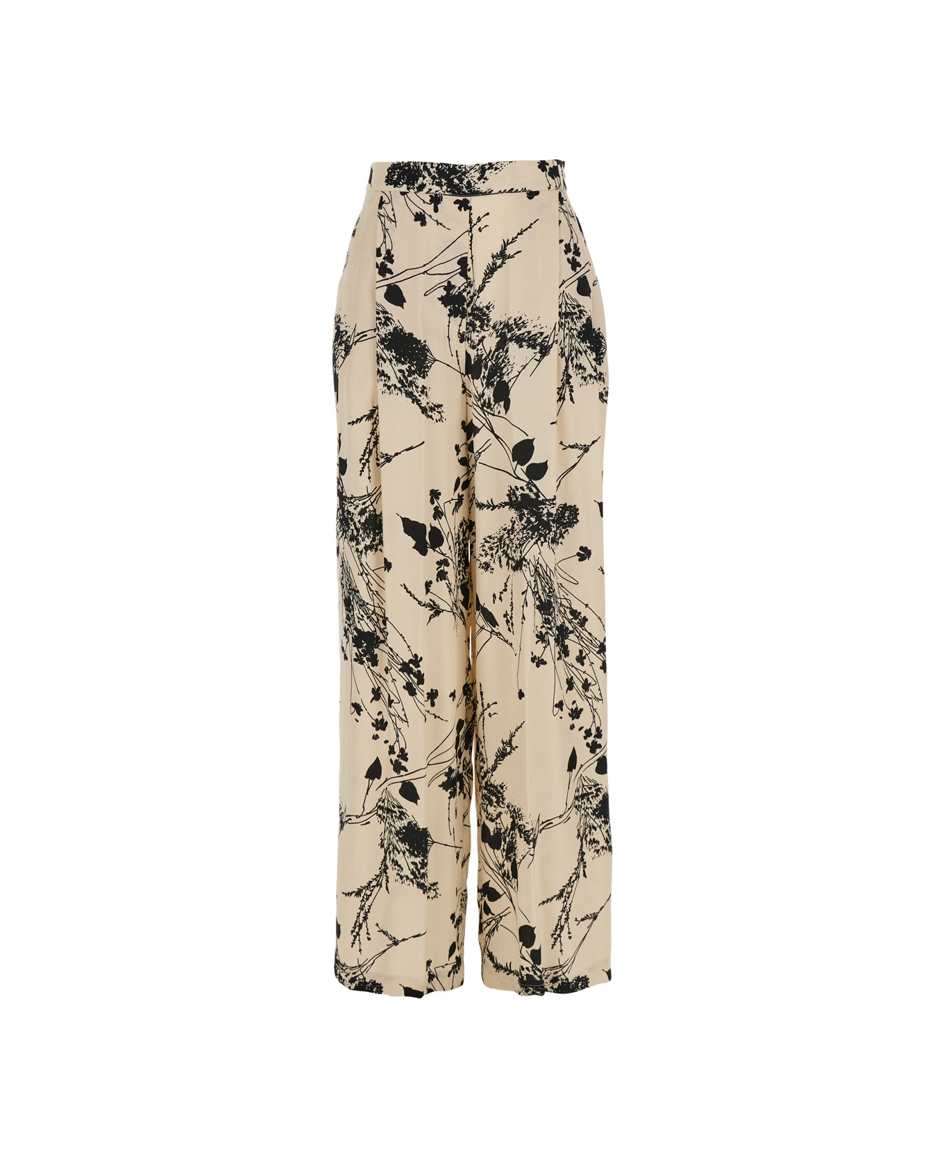 'edwina' White And Black Pants With All-over Floral Motif In Fabric Woman
