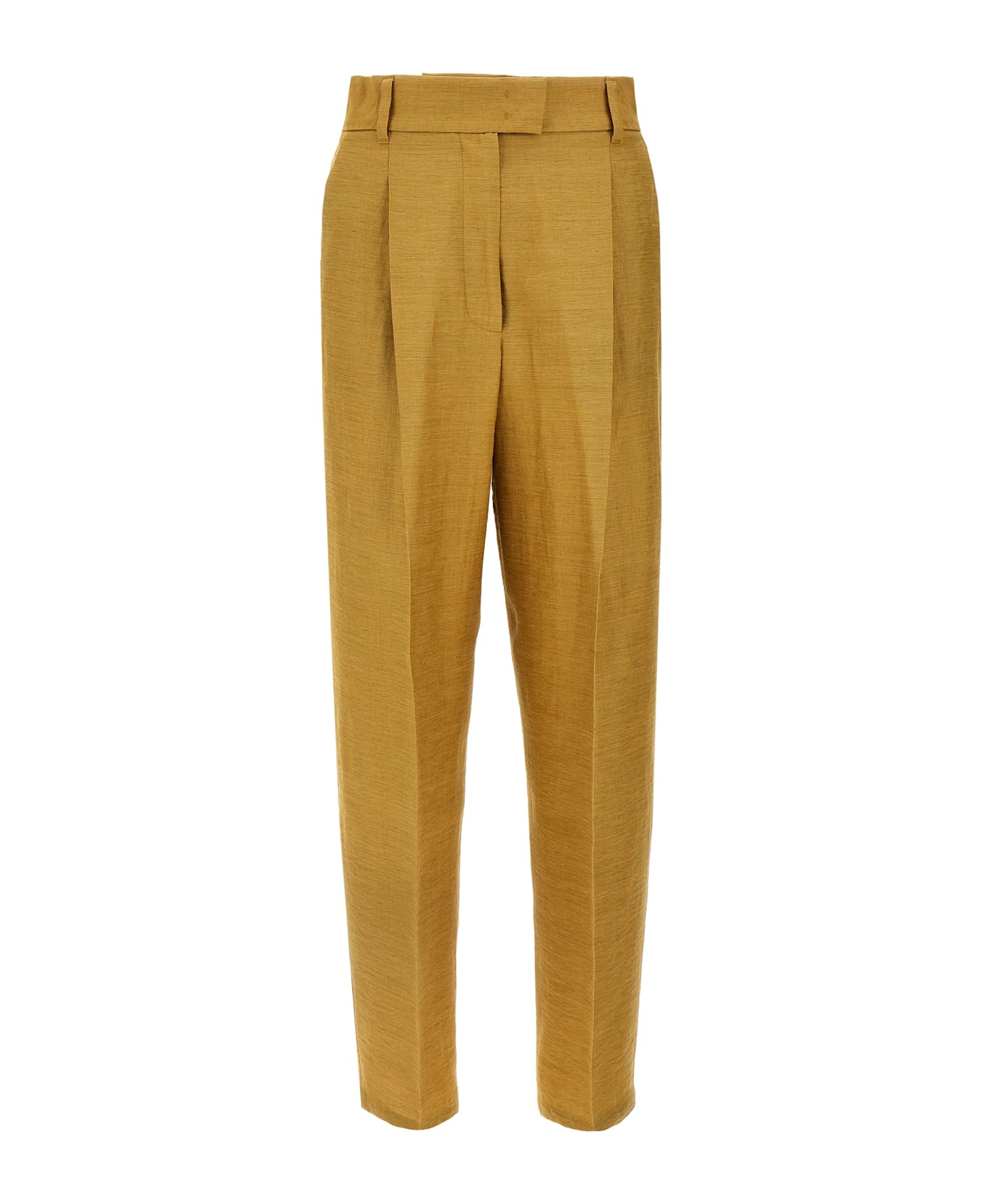 'Efedra' pants in a natural silk blend fabric, straight high-waisted model with zip and hook closure.