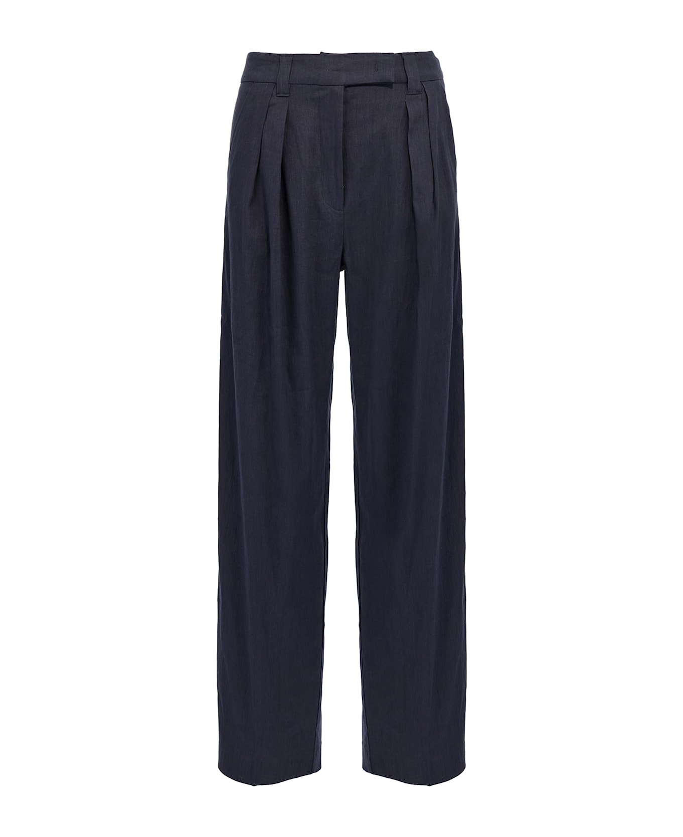 Emily Ratajkowski x Marella capsule pants in linen canvas and stretch viscose, hook and button zip closure, pockets, straight leg with pleats and stretched pleat. Composition: 61% li, 38% vi, 1% ea