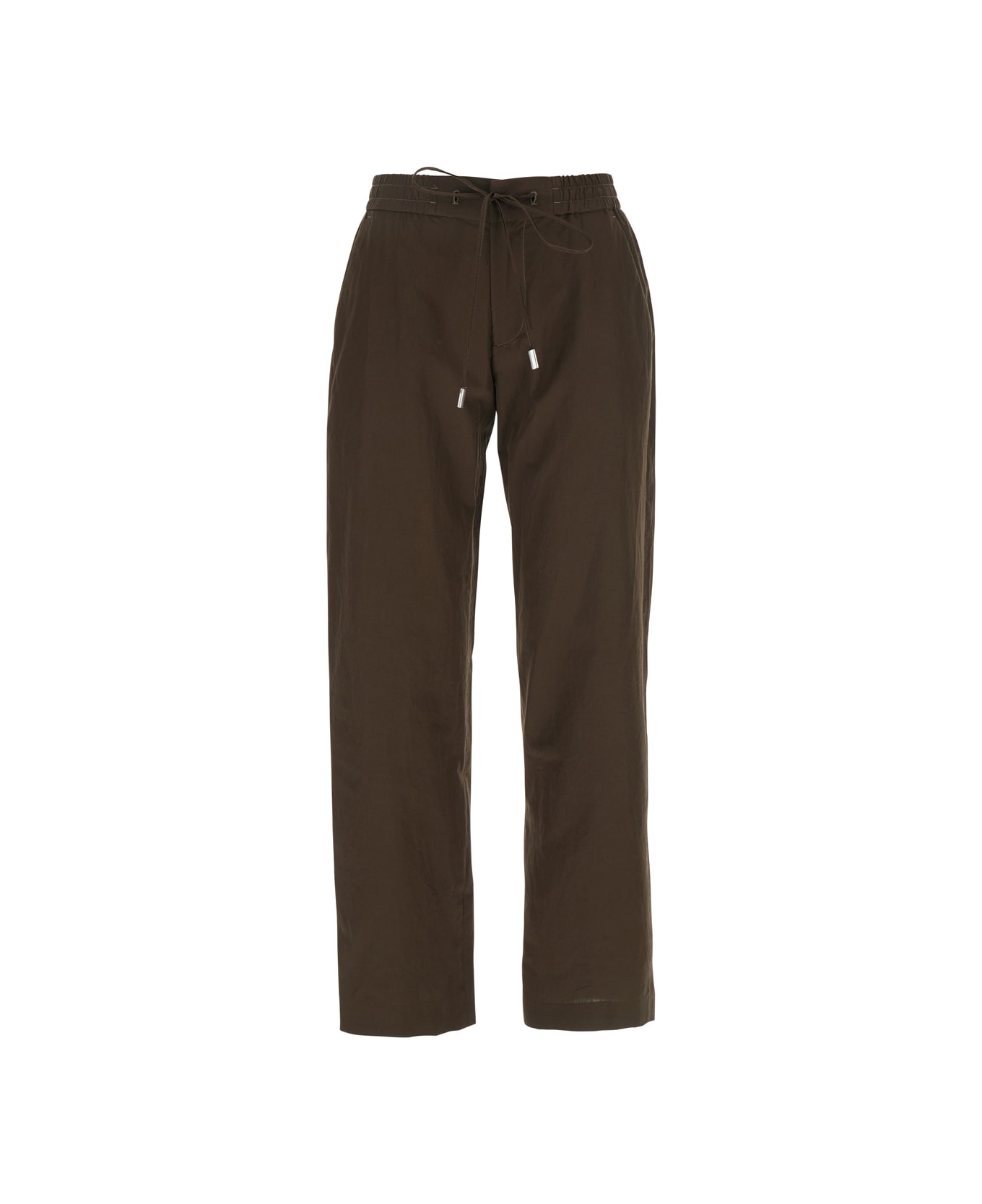 Pants Brown Elasticized waist with drawstring Hidden eyelet and zip fastening Two side pockets Two hidden pockets on the back Cotton Regular fit